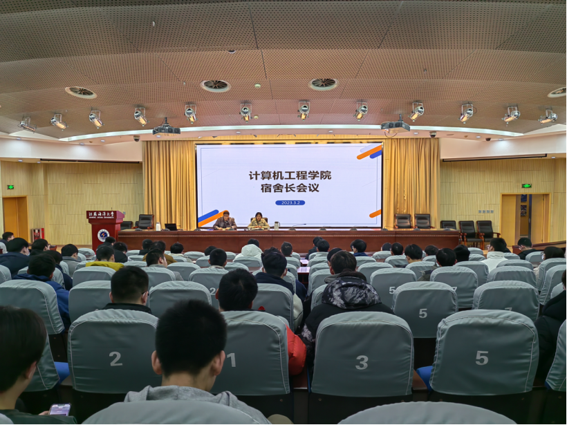 为进一步规范管理学生宿舍,充分发挥宿舍长的作用,营造安全、和谐、舒适、积极的宿舍环境,2023年3月2日,计算机工程学院在会议中心黄海厅召开全体宿舍长会议。学院辅导员穆远超、李航霄出席本次会议,学院全体宿舍长到场参加。
