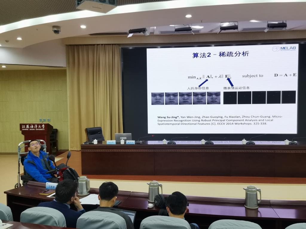 我校校友中国科学院王甦菁副研究员报告的题目为《微表情分析》。身残志坚的他在报告中首先介绍了他艰难的求学经历和艰苦的研究过程,然后介绍了他的研究对象—微表情分析的发展历程,重点介绍了微表情分析中几个重要的算法,最后展示了他们课题组正在进行的研究--深度微表情数据。