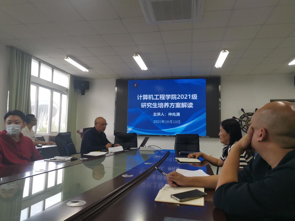 10月13日下午,计算机工程学院2021级硕士研究生师生见面会在计算机楼306会议室召开。学院领导班子、全体研究生导师、2021级研究生参加会议。会议由副院长仲兆满主持。