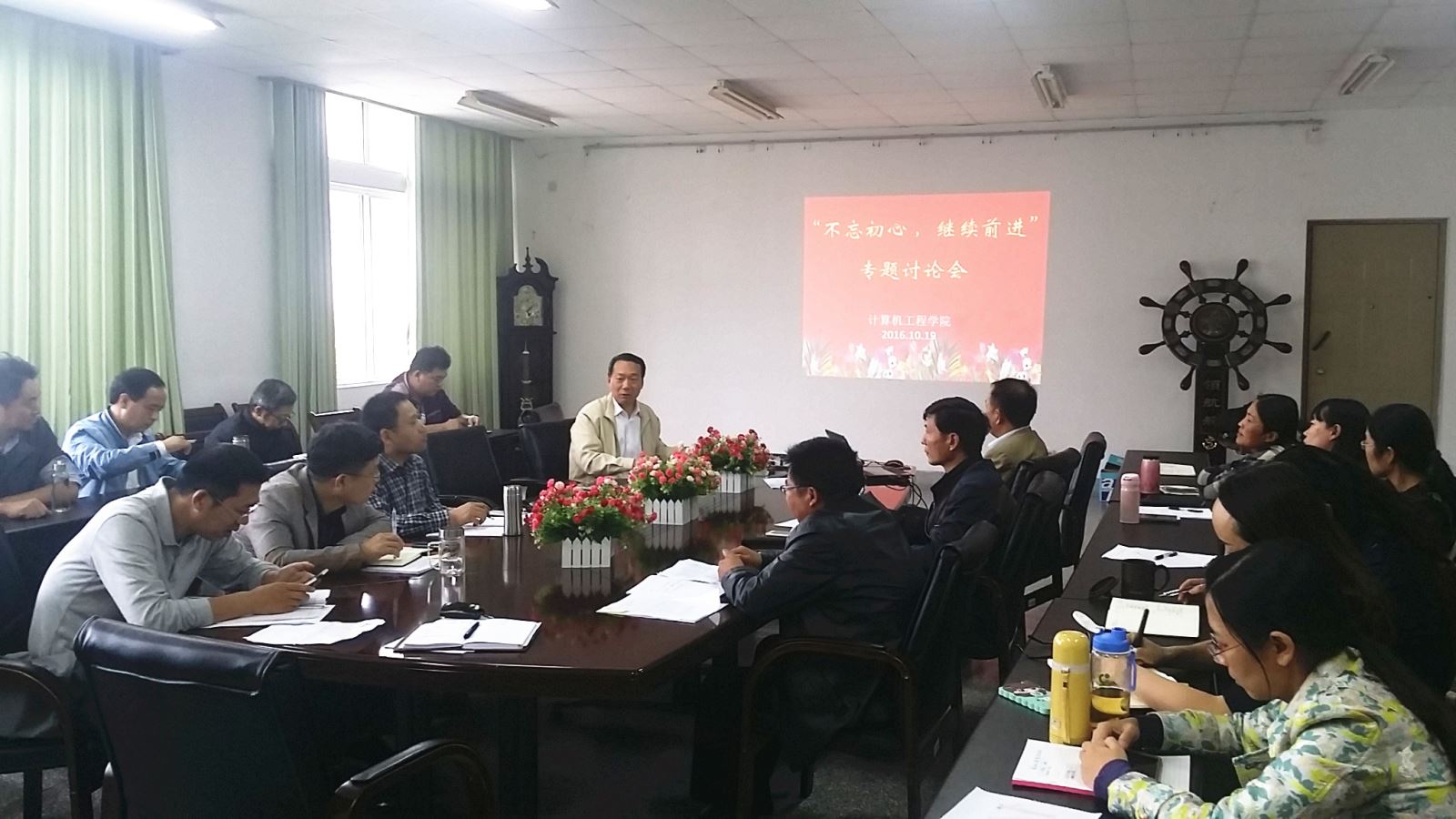 计算机工程学院党委本学期开学以来将学习习近平总书记“七一”重要讲话融入“两学一做”学习教育中,在中心组学习、教职工理论学习上多次组织学习贯彻习近平总书记“七一”重要讲话精神。在此基础上,10月19日下午,组织全体教师党员开展了 “不忘初心,继续前进”专题大讨论。