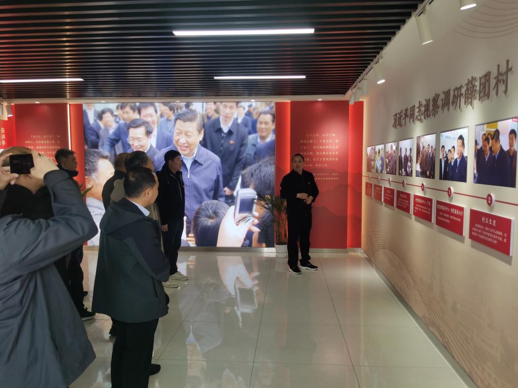 步入“习近平新时代中国特色社会主义思想实践在薛团”主题馆,结合馆内展示的视频图片资料,洪庄镇党委副书记陈江斌介绍了习近平总书记2009年在薛团村考察时的情景,参加活动的党员聚精会神,认真聆听,深受鼓舞。陈江斌说,薛团村的老百姓牢记习近平总书记“天下大事,必作于细“的殷殷嘱托,满怀对习近平总书记和党中央的感恩之情,以高度的责任感全面落实乡村振兴战略,为谱写”强富美高“新江苏现代化建设新篇章贡献力量。