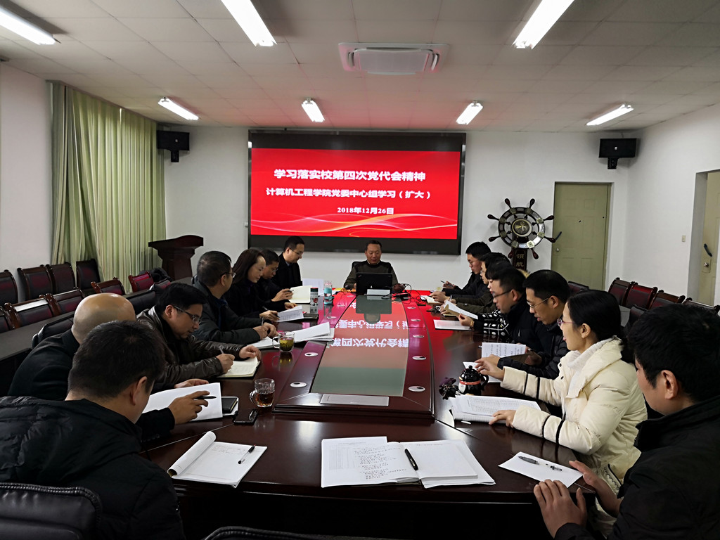 12月26日下午,计算机工程学院在学院306会议室组织党委中心组(扩大)学习会议,学院领导班子成员和各系室主任、副主任参加了本次学习会,会议传达学习校第四次党代会精神,会议由学院党委书记赵耀华主持。