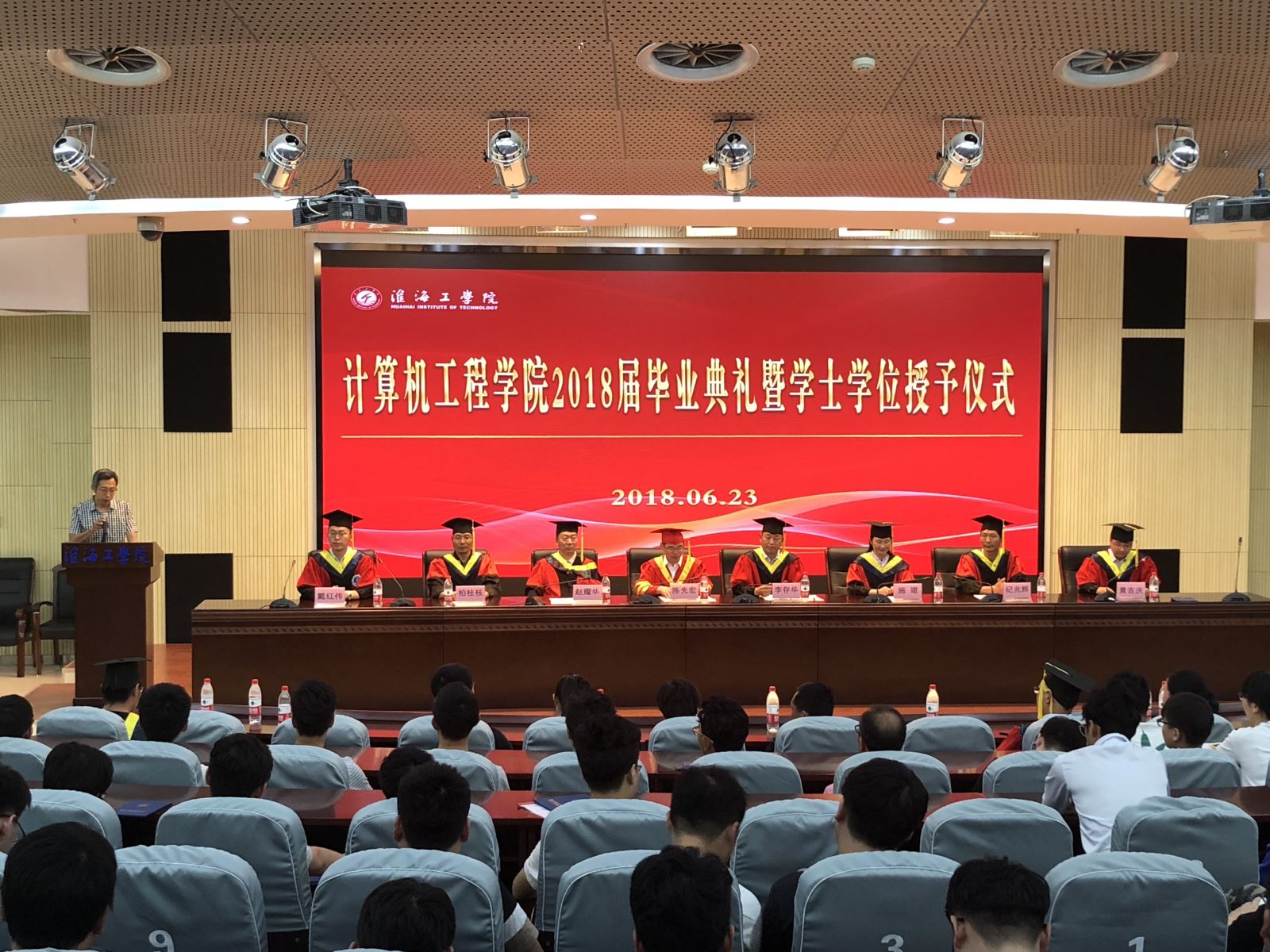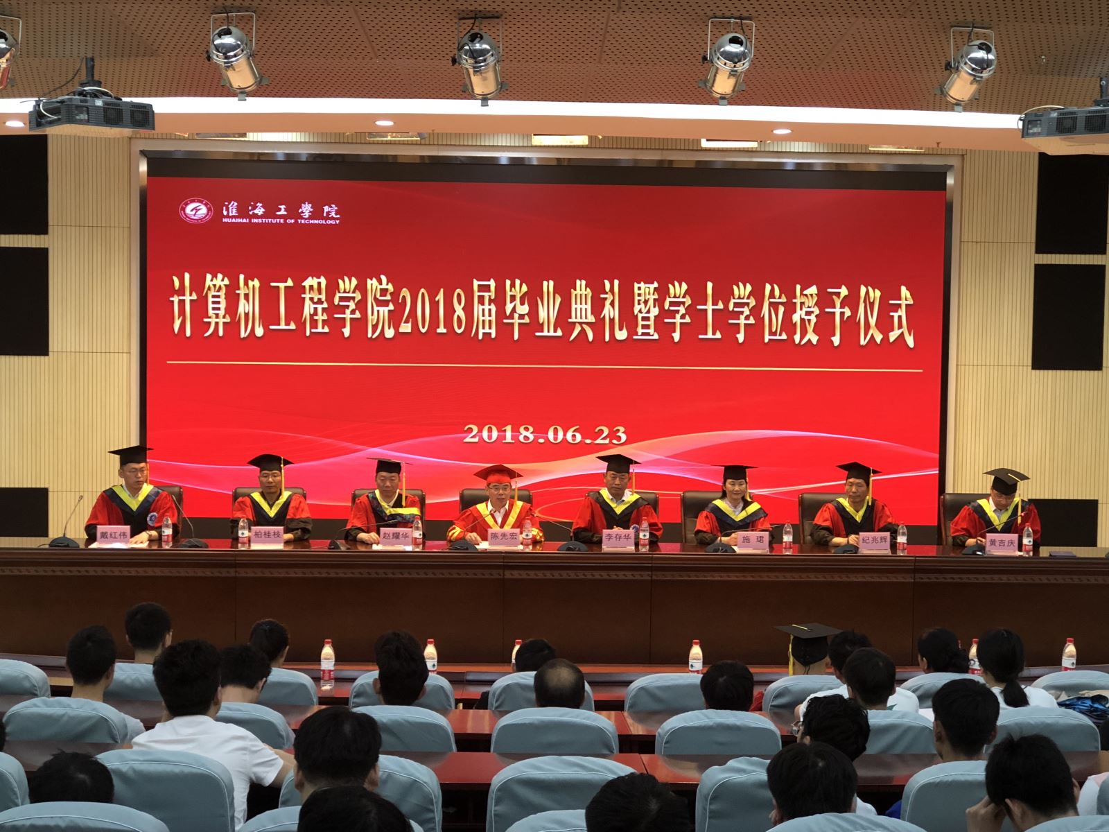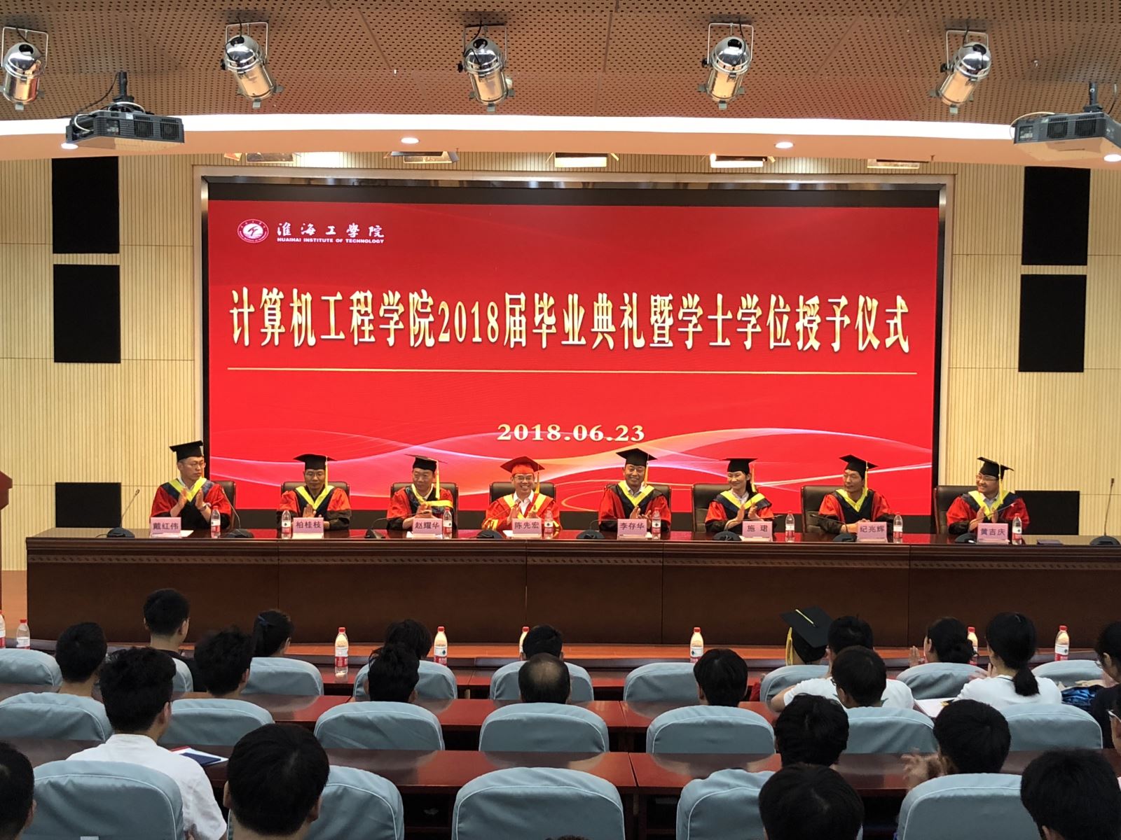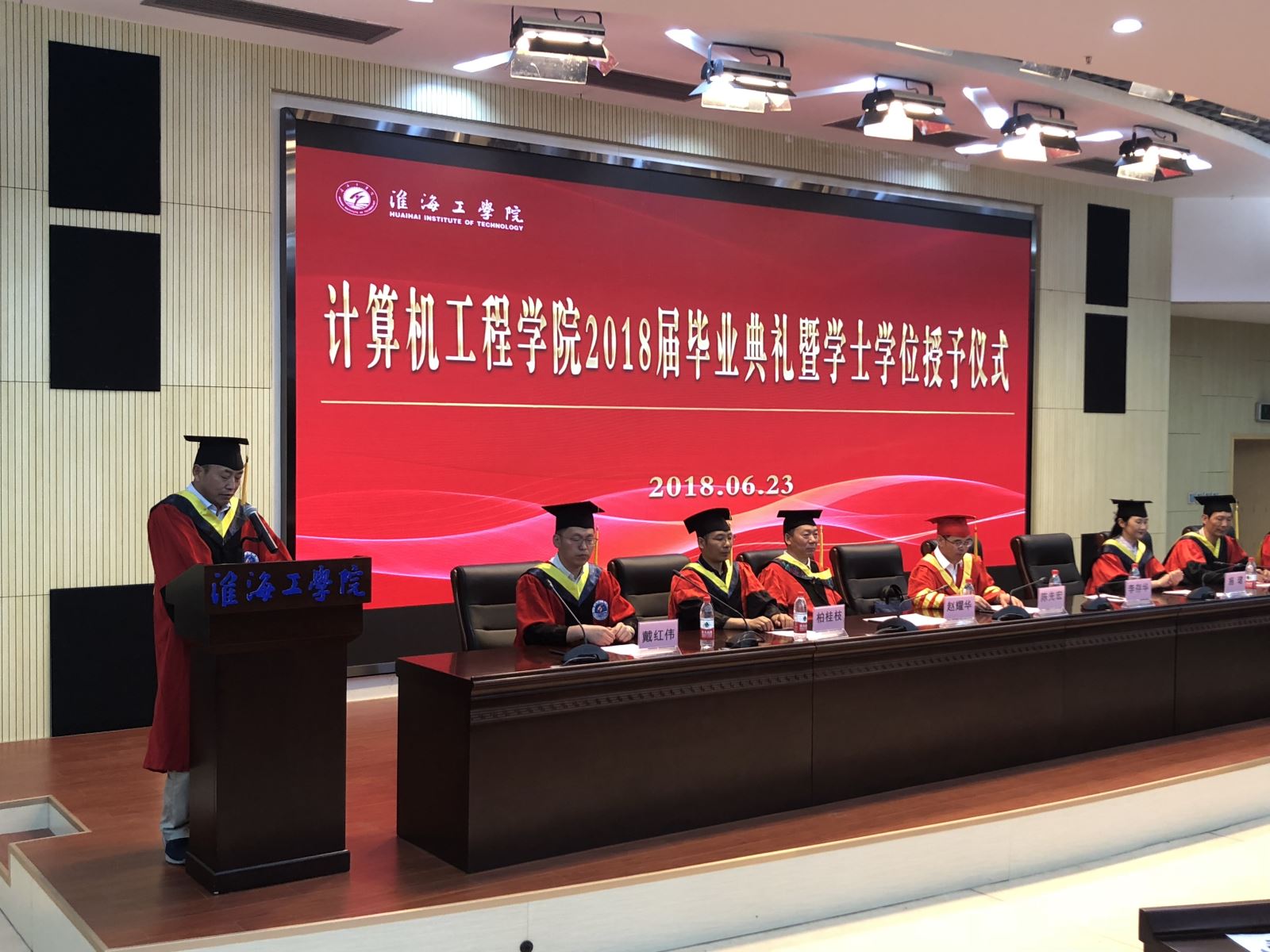 6月23日下午,计算机工程学院2018届毕业典礼暨学士学位授予仪式在会议中心黄海厅隆重举行,副校长陈先宏、学院党政领导、教授、系主任、党政办、教学办、学工办所有老师、毕业班班主任、部分毕业生家长及全体2018届毕业生参加了毕业典礼,院党委副书记黄吉庆主持仪式。