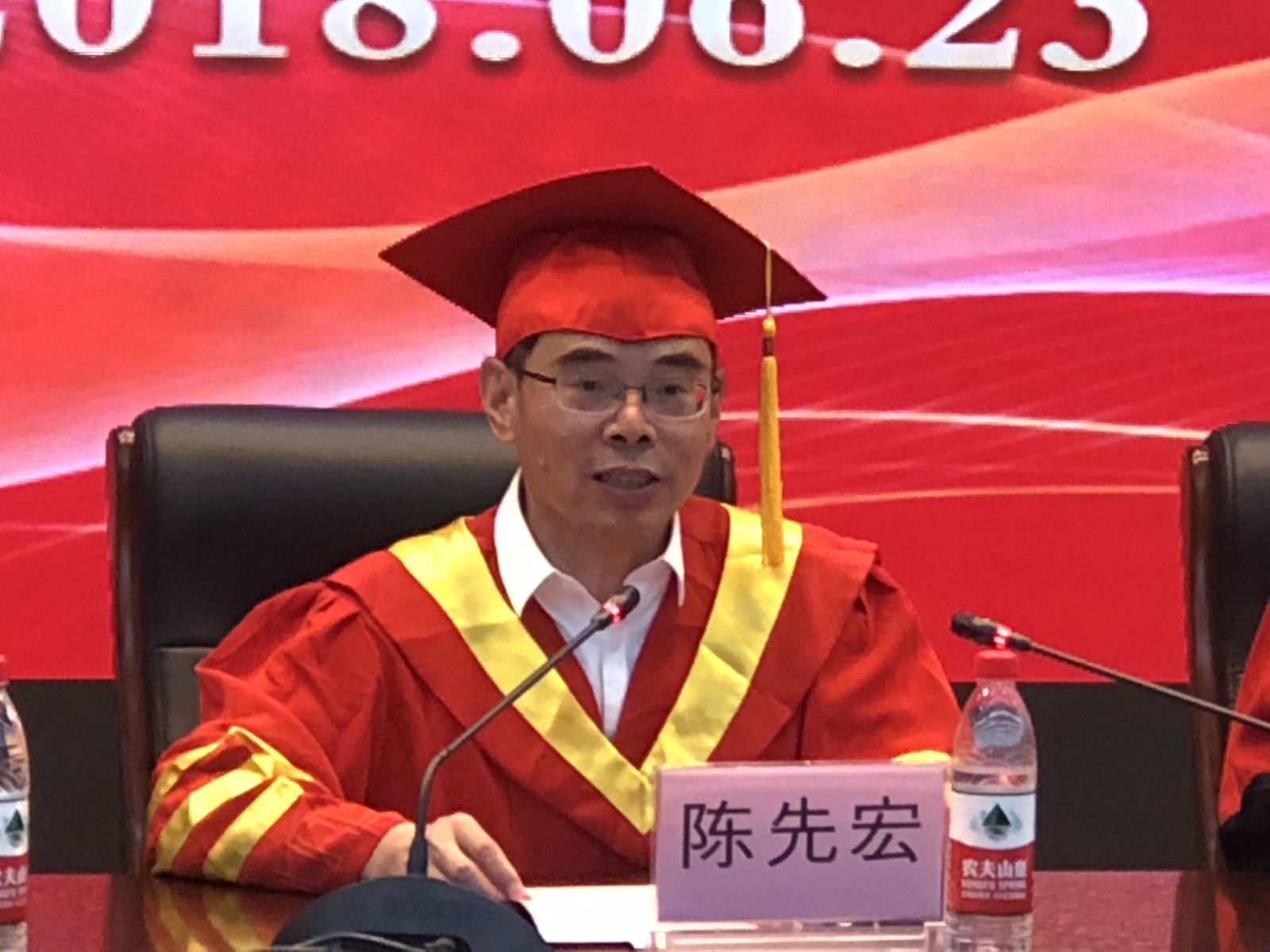 最后,副校长陈先宏代表学校党政作重要讲话,他回顾了2018届毕业生在校四年间学校所取得的每一项成绩,向同学们为学校事业发展所做出的贡献表示了由衷的感谢,他希望毕业生们珍惜这个伟大时代,以明确的目标、坚实的基础、务实的行动和平和的心态来成为新时代的奋斗者。“让我们携手奋进、努力奋斗,在实现中国梦的伟大实践中,成就你们的人生梦想,实现母校的大学梦想。” 最后,陈先宏向各位毕业生致以最热烈的祝贺和最美好的祝愿!