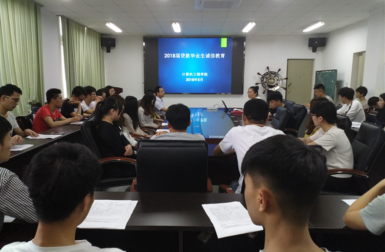 为帮助贷款毕业生明确还款流程和注意事项,牢固树立诚信理念,自觉履行还款义务,计算机工程学院于5月17日下午在306室召开2018届贷款毕业生诚信教育会议,2018届全体贷款毕业生参加活动,院党委副书记、副院长黄吉庆作教育动员讲话。