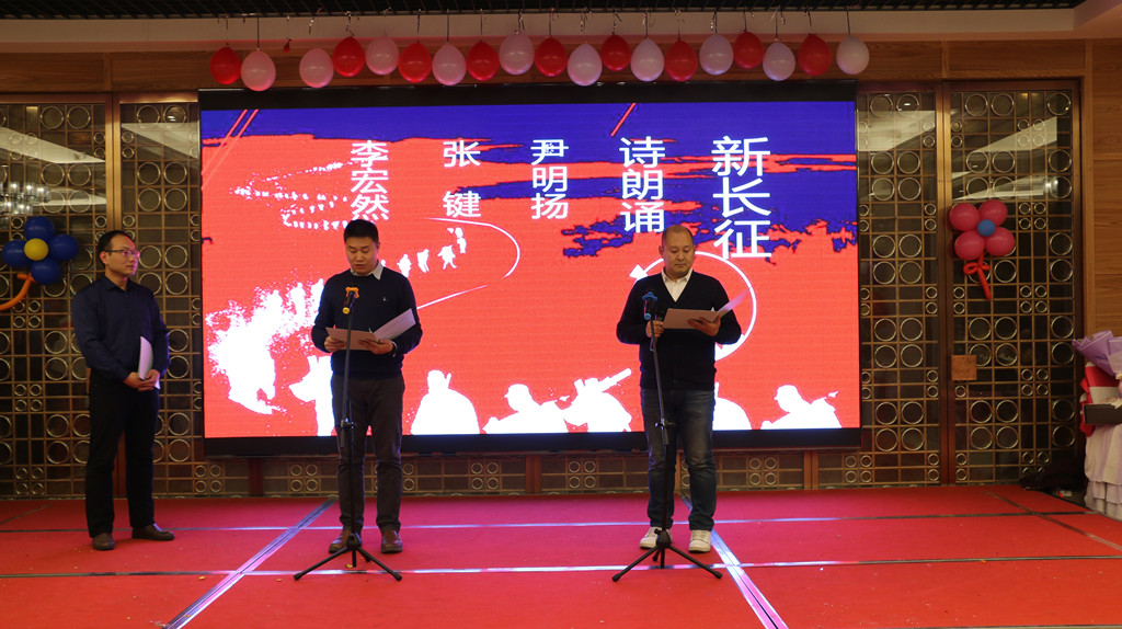 学院党委书记赵耀华致新年贺词,他简要回顾了学院过去一年的工作,总结指出取得的成绩和不足,对2018年的工作提出了希望。院长李存华宣布晚会开始。晚会由姜兵、姜宏岸、黄霞、樊宁四位老师主持。