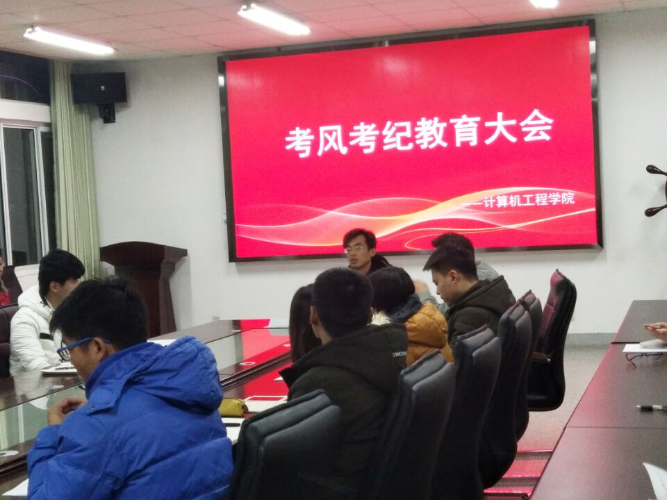 为进一步加强学院学风建设,严肃考风考纪,强化学生学业诚信意识,12月15日,计算机工程学院在计算机楼306会议室举办考风考纪教育大会。院党委副书记、副院长姜兵、辅导员唐康、各班班长、党员代表参加会议。