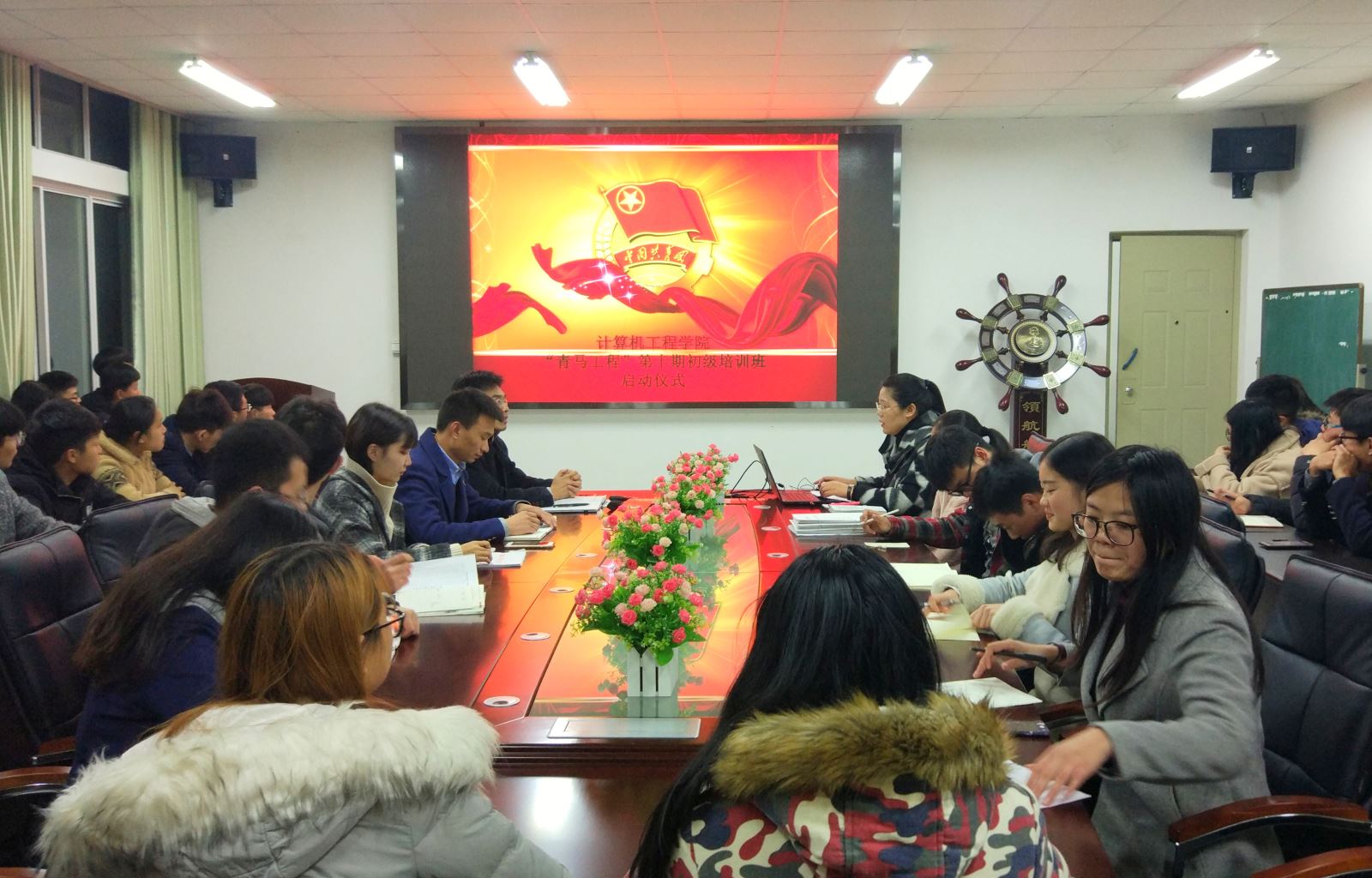 为进一步实施素质教育、培养创新型人才,培养一支思想政治素质过硬、政治理论水平较高、具有创新能力和领导能力、实践能力和组织协调能力的多元化发展的学生骨干队伍,11月20日晚,计算机工程学院于学院会议室正式启动第十期“青马工程”培训班,院党委副书记、副院长姜兵、辅导员杜捷、院团委委员以及本期培训班全体学员参加了仪式。