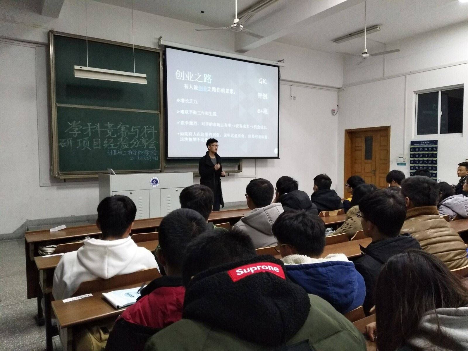 为在全院营造浓厚的科研创新创业氛围,提高本院学生投身科研创新创业事业的积极性,12月10日晚,计算机工程学院在文通楼举办学科竞赛与科研项目分享会,刘骏、潘哲、汪严龙三位同学分别从创新创业、学科竞赛、科研项目的角度作了经验分享。