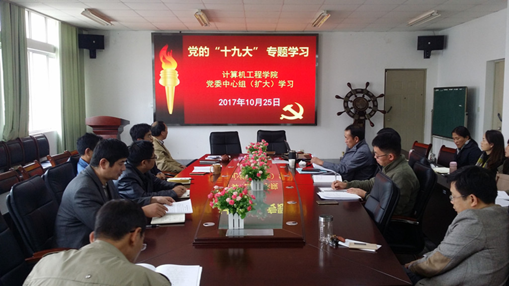 10月25日下午,计算机工程学院党委中心组(扩大)召开十九大专题学习会,学习领会十九大报告,组织号召学习十九大精神。学习会由学院党委书记赵耀华主持,学院党委中心组全体成员以及8个支部的支部书记、各系室(中心)主任、副主任参加了本次学习会。