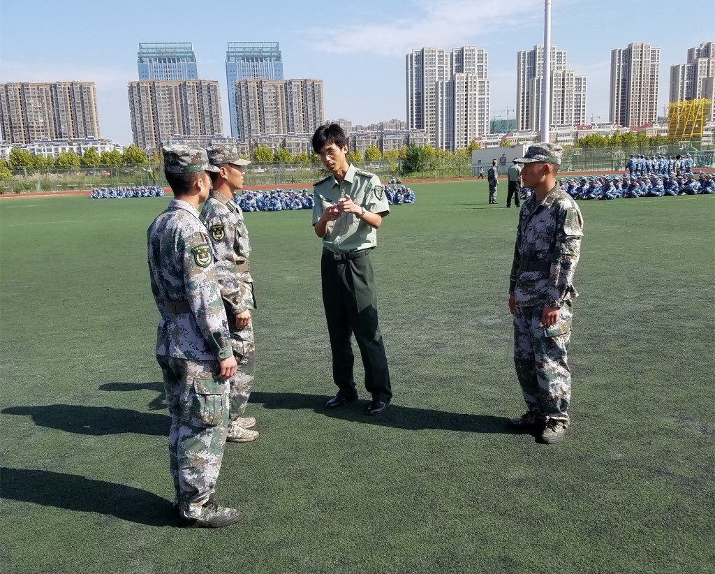 在训练场,学院领导观看了学生方阵训练,与军训教官进行了亲切的交流,了解学生的训练情况。姜兵代表学院向辛勤付出的官兵表示衷心的感谢并送上慰问品。他指出,教官们在军训中充分展示了人民军队的光荣传统和优良作风,体现了艰苦奋斗、勇于拼搏和团队协作的优良品质,为全体新生上了大学的第一课。同时,他希望同学们以教官为榜样,严格要求自己,磨炼意志品质,发扬吃苦耐劳、迎难而上的精神,争取以优异的成绩完成军事训练。