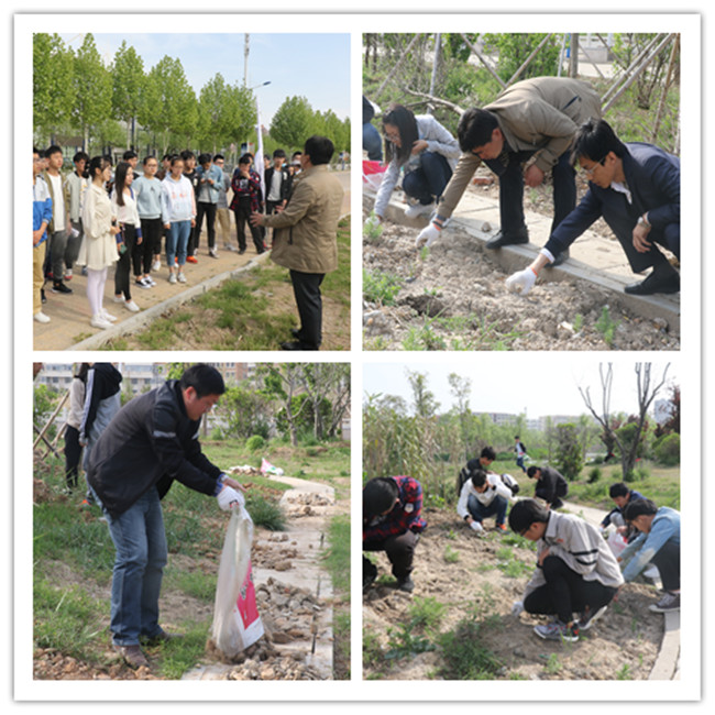 为助力文明城市创建,美化校园环境,加快建设江苏海洋大学的步伐。4月26日下午,计算机工程学院与校后勤管理处联合开展清洁校园的志愿服务活动,在校后勤管理处副处长郑红斌、计算机工程学院党委副书记姜兵的带领下,两个部门的教师代表和50余名来自计算机工程学院“学生领袖梦工坊”的学生干部参加了本次义务劳动。