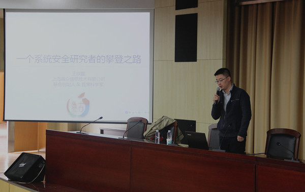11月4日下午,计算机工程学院邀请到上海犇众信息技术有限公司首席科学家王铁磊博士在校会议中心黄海厅为学院师生开展了题为“一个系统安全研究者的攀登之路”报告会。报告会由计算机工程学院副院长戴红伟主持,来自计算机工程学院、理学院、电子工程学院的300余名师生聆听了本次讲座。