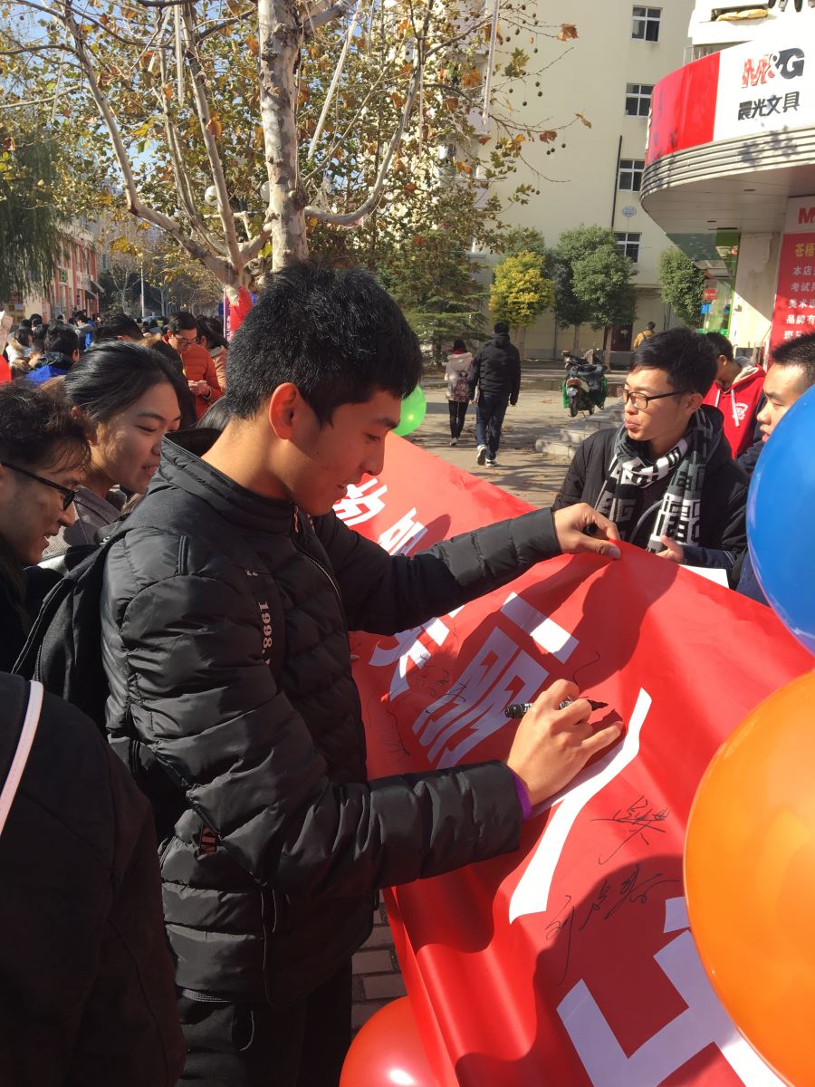 在“不抱怨”活动中,通过发放紫色手环的方式,向广大同学提出倡议,倡议大学生要爱自己、把握机会,遇到挫折从容面对,不抱怨、不放弃。活动现场吸引了很多同学参与,达到了预期效果。