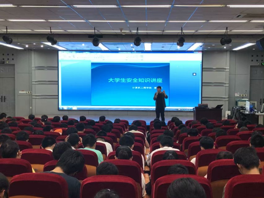 9月24日,江苏海洋大学计算机工程学院新生入学教育之安全知识讲座在艺术楼报告厅举行,辅导员潘刚毅主讲。
