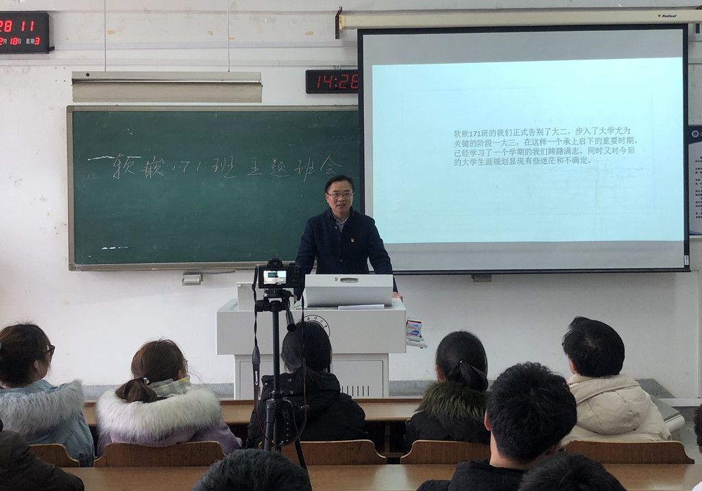 12月18日下午,软嵌171班“凝心聚力、迎势启航”主题班会在文通楼211教室圆满举行。本次班会由副校长严云洋教授发起,班主任樊宁老师主持。辅导员唐康老师和全班学生参加了班会。