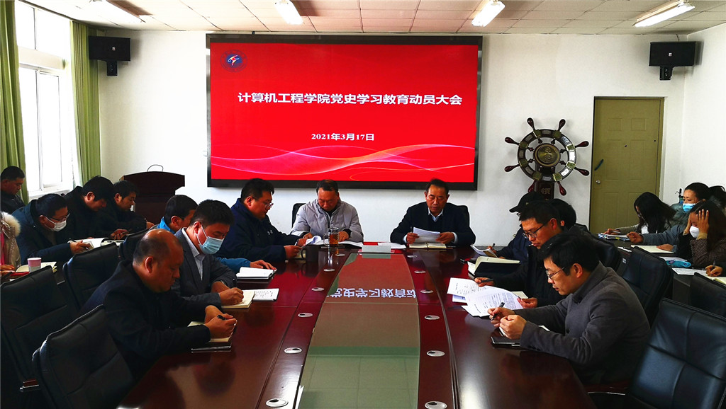 3月17日下午,我院在计算机楼306会议室召开党史学习教育动员大会,会议由党委副书记兰巍主持,全体教职工参加会议。