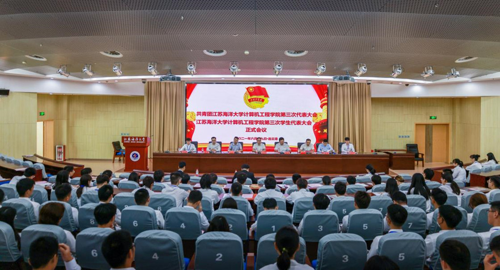 6月19日下午,共青团江苏海洋大学计算机工程学院第三次团代会暨第三次学代会在会议中心黄海厅隆重召开。校团委副书记王衍,计算机工程学院党委副书记兰巍,电子工程学院学工办副主任穆成银,体育学院团委副书记仝友鹏,艺术设计学院学工办副主任赵博出席会议,会议由学院学工办副主任唐康主持。159名正式代表出席会议并参加了大会选举。