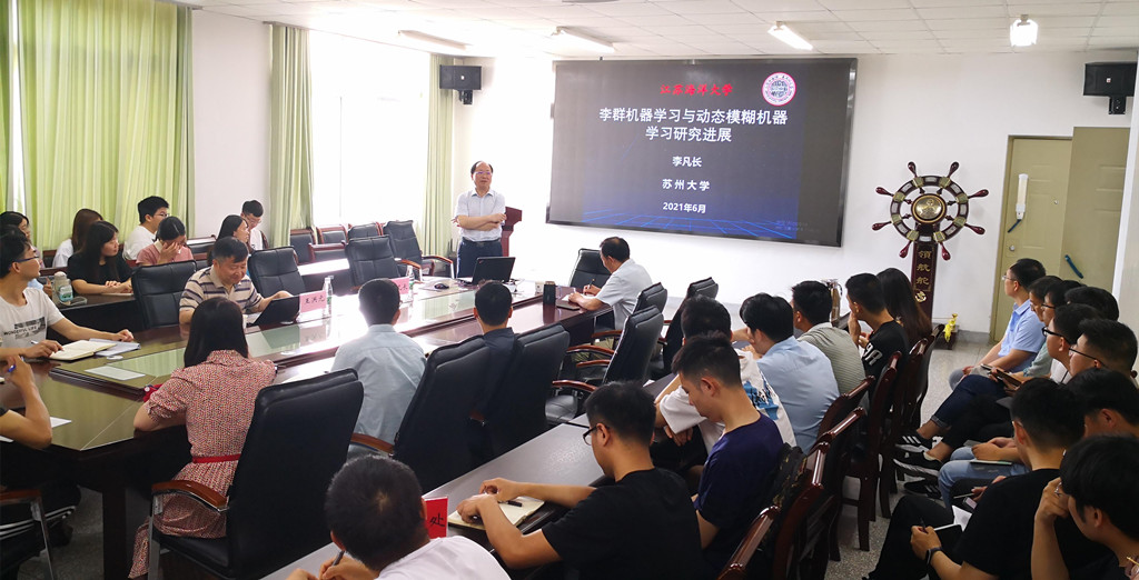 2021年6月30日,苏州大学李凡长教授,常州大学王洪元教授来我院作题为“李群机器学习与动态模糊机器学习研究进展”和“行人重识别研究若干进展”的学术报告,报告会在计算机楼306举行,计算机工程学院和电子工程学院的相关教师以及全体研究生参加了本次报告。报告会由计算机工程学院院长李存华教授主持。