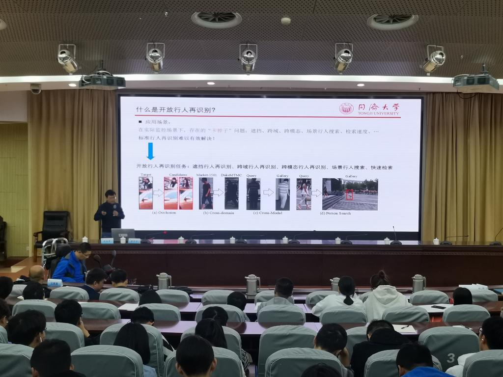 同济大学赵才荣教授报告的题目为《智能视频分析关键技术:行人再识别》。他首先介绍了行人再识别研究的相关知识和对维护社会公共秩序的重大作用。报告深入分析了近十几年行人再识别技术发展现状;报告首先从一个标准行人再识别算法流程出发,详细阐述三个关键技术:表征学习、度量学习和重排序优化。随后,列举了实际开放场景中面临的主要难点与挑战,并据此概括了五种开放行人再识别任务:遮挡、跨域、跨模态、场景行人搜索、快速检索。此外,他还进一步介绍了他们课题组在此方向上的进展和相关代表性工作。最后,报告对行人再识别的未来发展趋势进行了分析和展望。