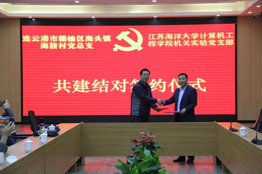 海脐村党总支书记李加侍对全体党员同志的到来表示热烈欢迎,座谈会上李加侍详细介绍了村党建工作、党史学习教育情况以及近几年来海脐村在党的富民政策下所取得的成绩和荣誉。机关实验党支部书记宋世斌则从党史教育、“两在两同”建新功行动、“我为群众办实事”和学院专业特色等方面介绍了具体工作和经验成效,双方在友好的气氛中签约结对共建。双方表示将在党史学习研讨、联办主题党日、党员干部互动、扶贫帮困互助、电商培训等方面展开深度合作,持续发挥“党建引领、业务互助、优势互补”作用,携手同心助力乡村振兴,共谱党建新华章。