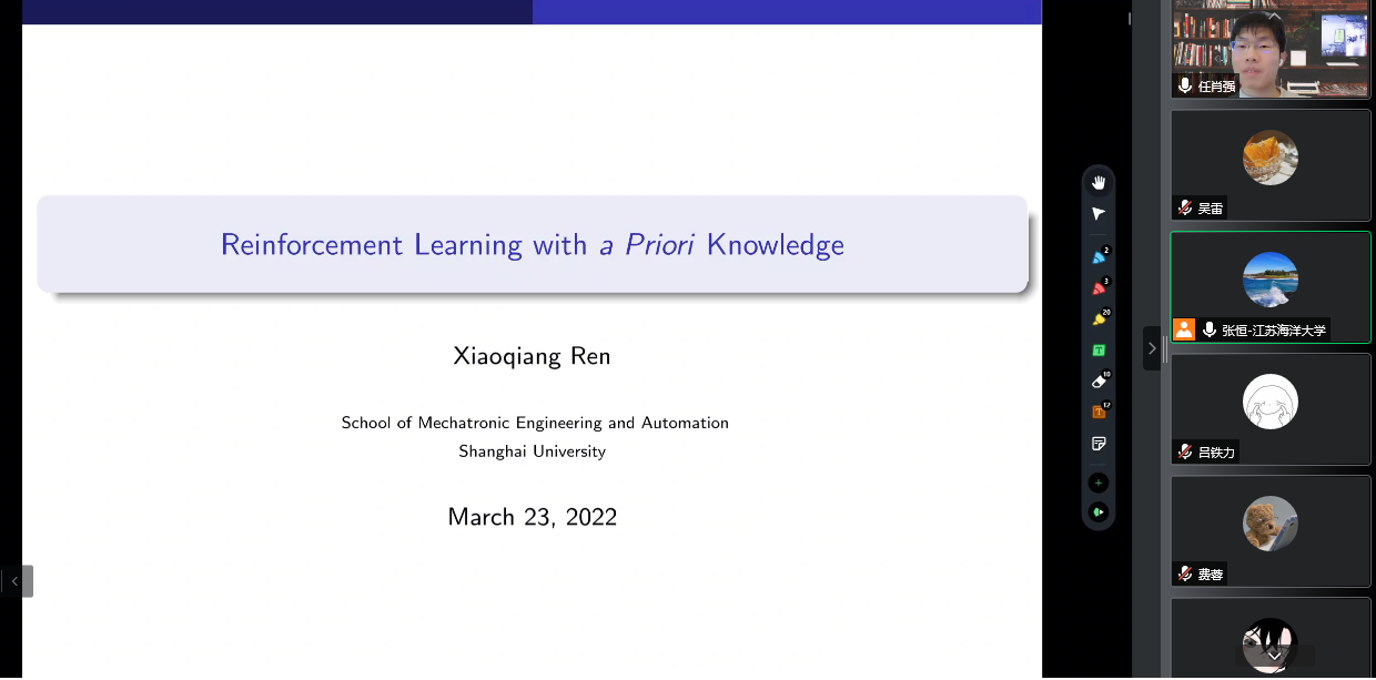 上海大学机电工程与自动化学院任肖强教授报告的题目为《融入先验知识的强化学习》。报告主要围绕如何把先验知识融入到强化学习的设计与训练的主题。在报告中,他介绍了包括未知通信信道数据的远程状态估计器的调度设计和在不规则环境下抓取的快速学习两方面内容。他首先阐述了调度器的设计,设计了一种保结构的Q学习算法,并通过大量的实验数据显示出了此算法相比于经典的Q学习算法的收敛速度提升。然后在不规则环境下的抓取中,他提出了一种通过不规则度量化及Q映射的掩藏的预抓取和抓取快速学习深度强化学习算法,最后证明了此算法在需要极少的训练数据即可实现与当前主流算法相当的抓取精度。