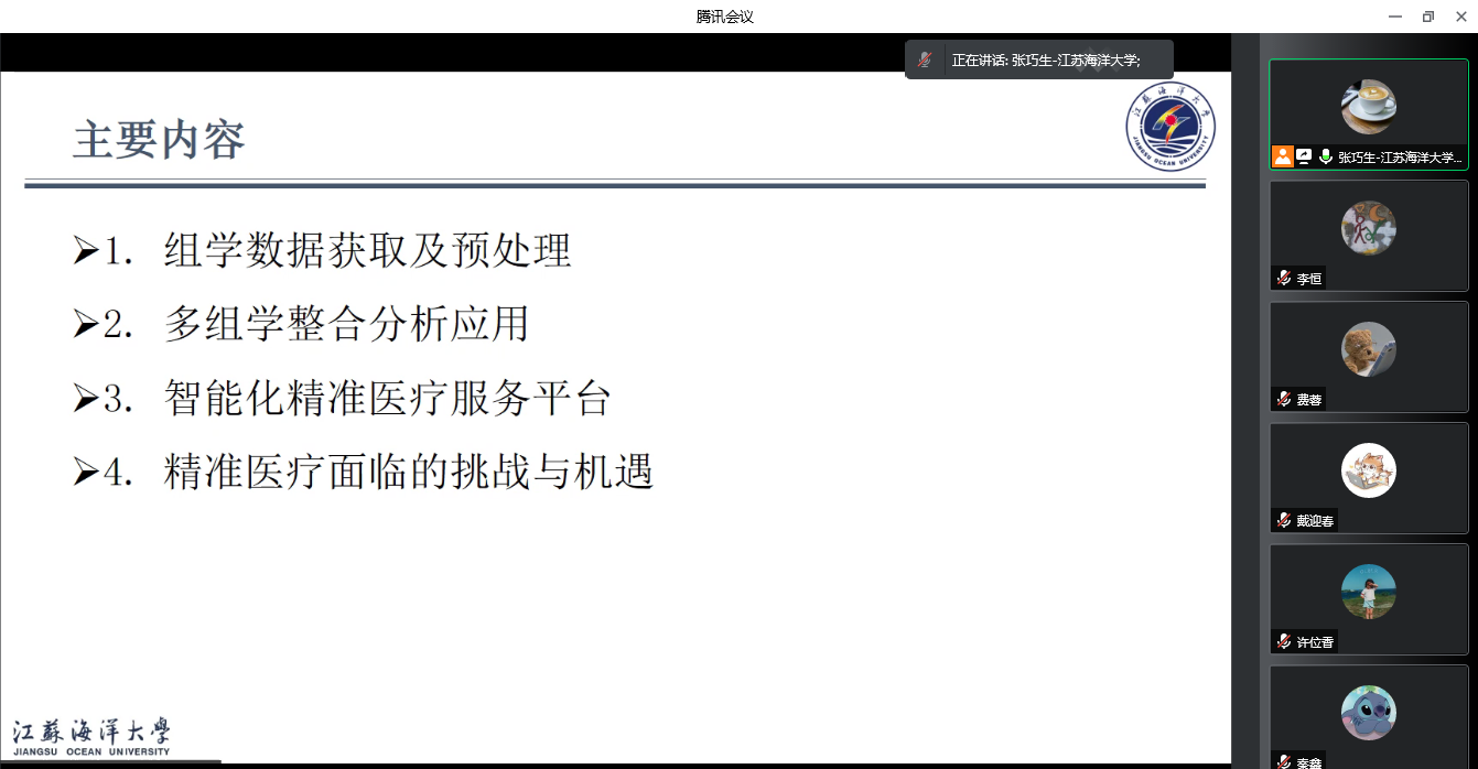 张巧生从组学数据获取及预处理、多组学整合分析应用、智能化精准医疗服务平台、基准医疗面临的机遇及挑战4个模块介绍了生物信息学研究的相关研究内容。