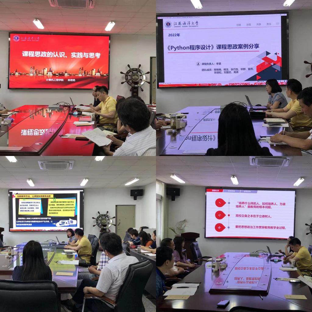活动中,支部党员李慧老师从《Python程序设计》课程的思政元素挖掘与运用,思政案例的设计与引入等方面进行了介绍分享,通过一个个具体的教学案例,展示了如何让知识传授与思政育人结合的更有温度、更有活力、更有力量。胡文彬老师从《数据结构》课程的课前“历史与今天”、课间“学习强国”、课堂“知识点思政”、作业“独立与协作”以及试题中的红色教育五个方面展示了课程思政的教学设计与方法。网络工程系党员陈艳艳老师则从思想认识、实践体会、感悟思考三个方面分享了自己在课程思政教学过程中的实践经验,总结了“一条主线”+“五大重点”的思政元素来源与表达,重点突出了课程思在学生培养中的引领地位、教师在课程思政中的主导作用以及教师党支部在课程思政建设中的组织推动作用。