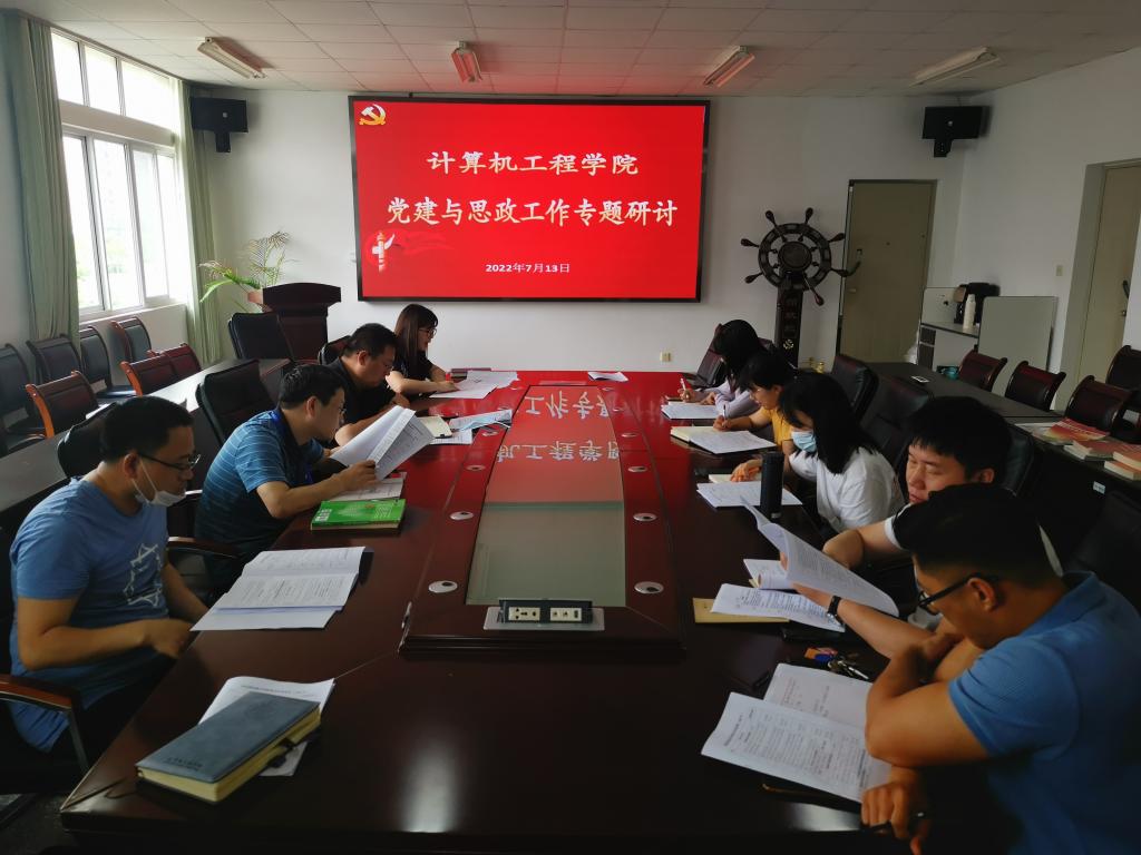 7月13日下午,计算机工程学院在306会议室召开党建与思政工作专题研讨。学院党委书记唐瑶、副书记兰巍、各党支部书记、党政办负责人、辅导员参加会议。