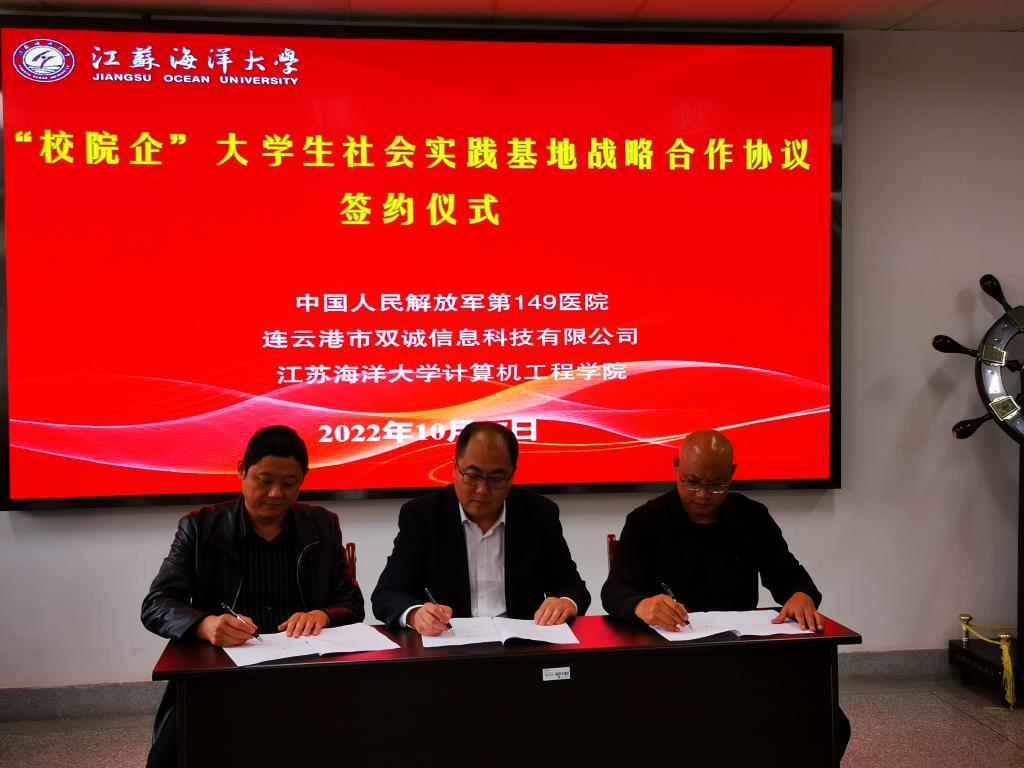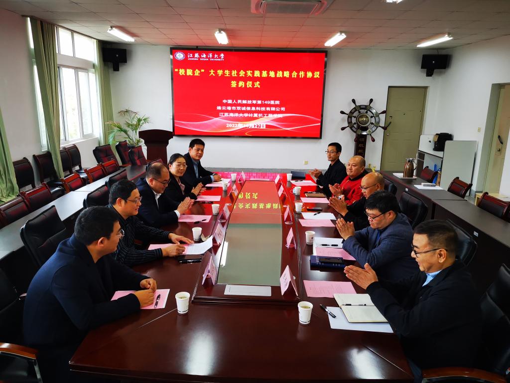 仲兆满对何雪冬和史彦台一行的到来表示热烈的欢迎,详细介绍了计算机工程学院的发展历史、专业建设、师资力量、科研、招生规模和社会服务等基本情况。副院长张恒结合计算机工程学院在专业工程教育认证、人才培养等方面取得的成绩和现状重点介绍了学院的教学安排、办学特色和实践基地。何雪冬介绍了连云港一四九医院信息化的现状及存在的问题,希望在课题申报、社会服务等方面加强交流与合作。史彦台表示信息技术企业的高质量发展离不开高水平、高素质IT人才的支撑,对学院高素质复合型应用人才培养定位给予了高度评价,并表达了企业对学院人才与智力资源的需求,希望通过大学生社会实践基地的建立,在课题研究、培训、实习实训等方面加强合作,优势互补,实现共赢。三方针对课题合作研究、人才联合培养、实习实训安排等议题展开深入研讨并举行了“校院企”大学生社会实践基地战略合作协议签约仪式。