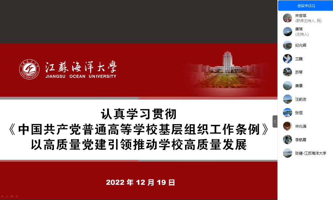 12月19日,计算机工程学院党委理论学习中心组开展第八次集中学习会。学院全体党委委员、党支部书记参加学习会,会议以线上方式进行,由学院党委书记唐瑶主持。