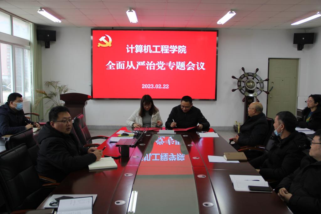 2月22日下午,计算机工程学院在计算机楼306会议室召开2023年度全面从严治党专题会议。学院党委书记唐瑶主持会议,学院党委班子成员和全体教工党员参加会议。