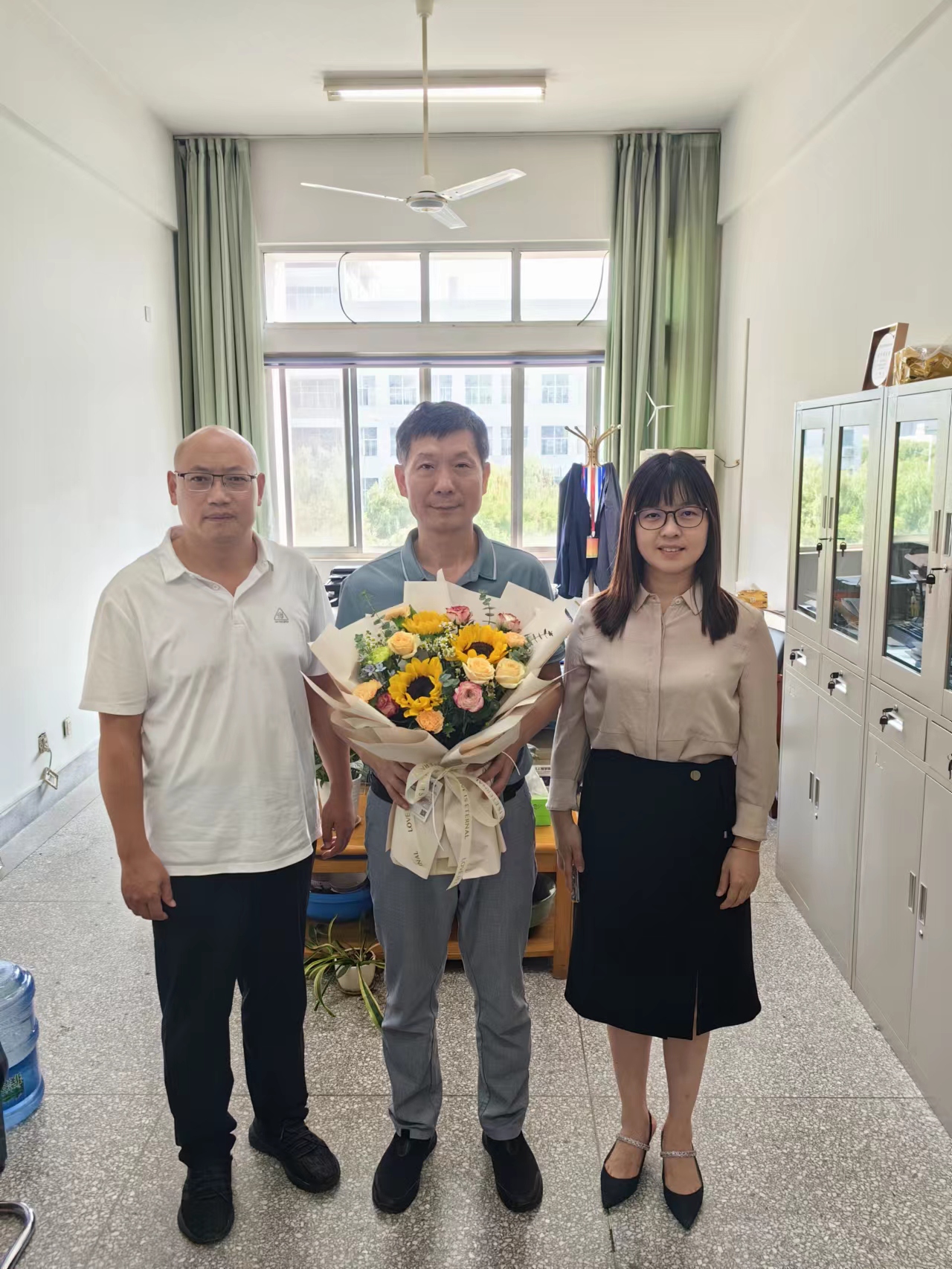 走访慰问中,学院领导为纪兆辉、陈书谦两位从教满30周年的教师送上鲜花和祝福。感谢他们为教育事业付出的辛勤和汗水,并诚挚地祝福他们节日快乐、桃李芬芳。