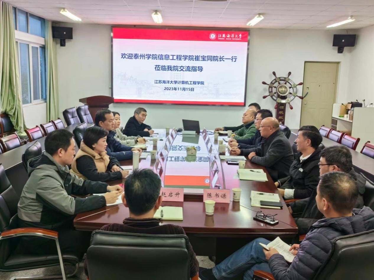 2023年11月15日下午,泰州学院信息工程学院院长崔宝同带领学院骨干教师一行,赴计算机工程学院进行学习交流。计算机工程学院院长仲兆满携部分班子成员、骨干教师参加会议。。
