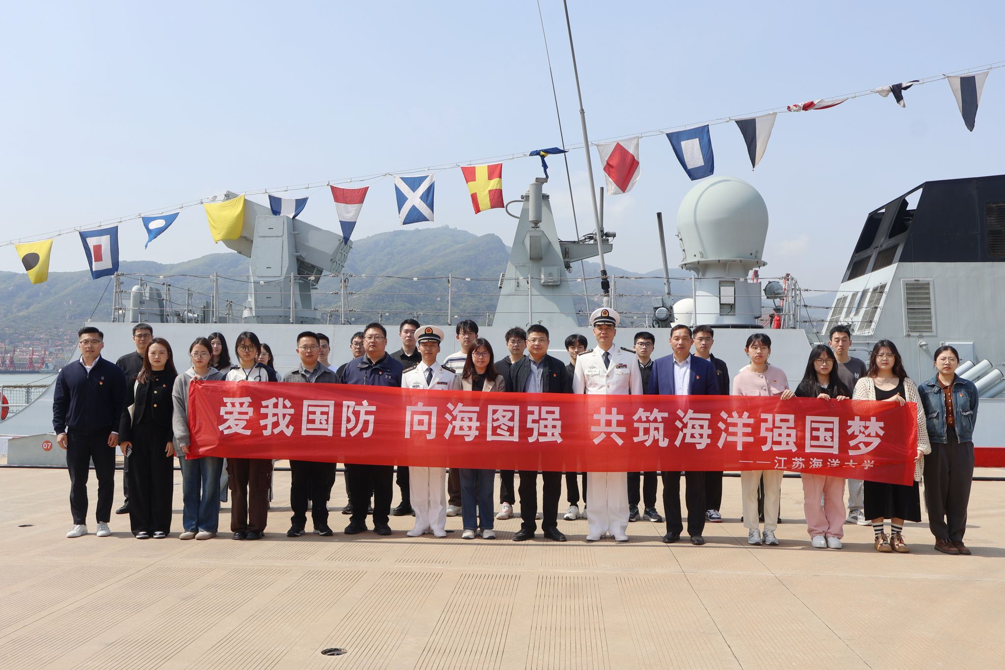 为加强师生国防意识和海洋意识,引导师生“知海学海爱海”,4月21日,计算机工程学院组织师生前往中国人民解放军海军某部开展了以“爱我国防、向海图强、共筑海洋强国梦”的蓝色思政教育交流活动。校党委常委、副校长朱国军,校人民武装部副部长张志浩,计算机工程学院党委书记唐瑶,党委副书记兰巍,全体辅导员以及部分学生党员共同参加了此次活动。