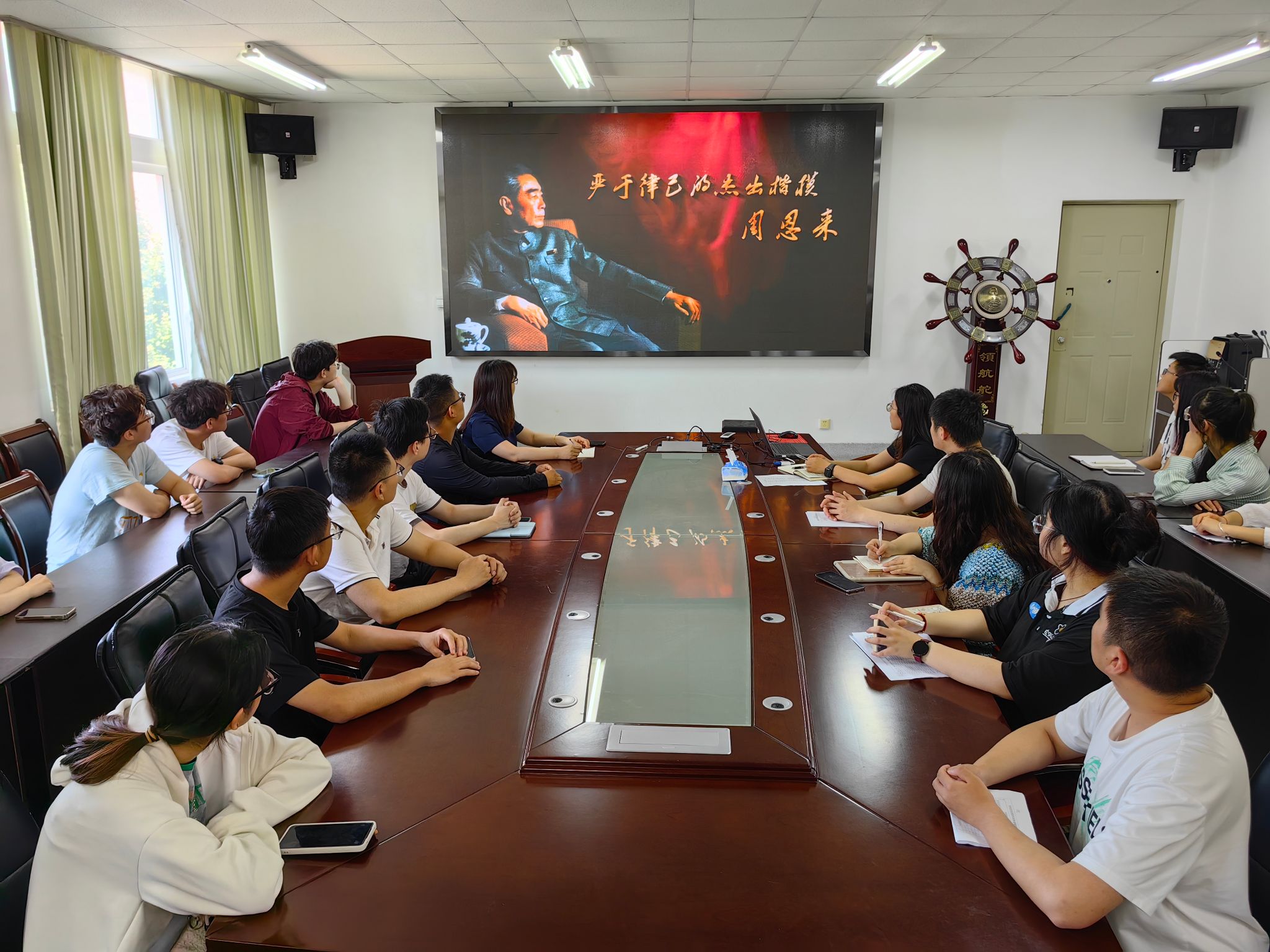 与会党员共同观看了《严于律己的楷模——周恩来》专题片。周恩来同志一生公正无私、清正廉洁,无论身处何地、担任何职,都展现出了对党和人民的无比忠诚与担当,为全体党员树立了光辉榜样。
