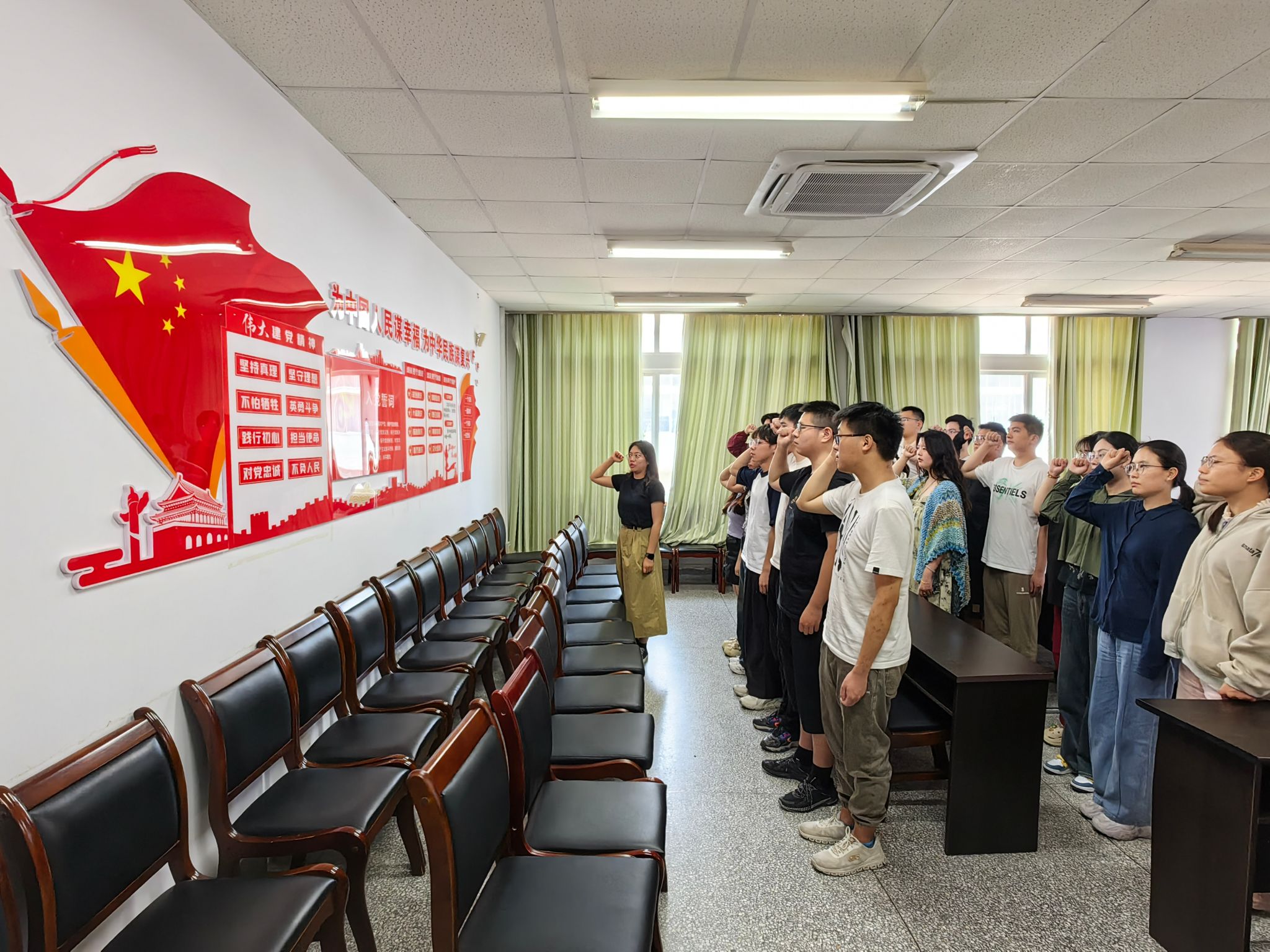 在学生第一党支部书记李航霄的带领下,全体毕业生党员庄严地重温了入党誓词。铿锵有力的誓词回荡在活动现场,不仅深深烙印在每位党员的心中,更激励着他们始终坚守对党忠诚的政治品格,不忘初心、砥砺前行。