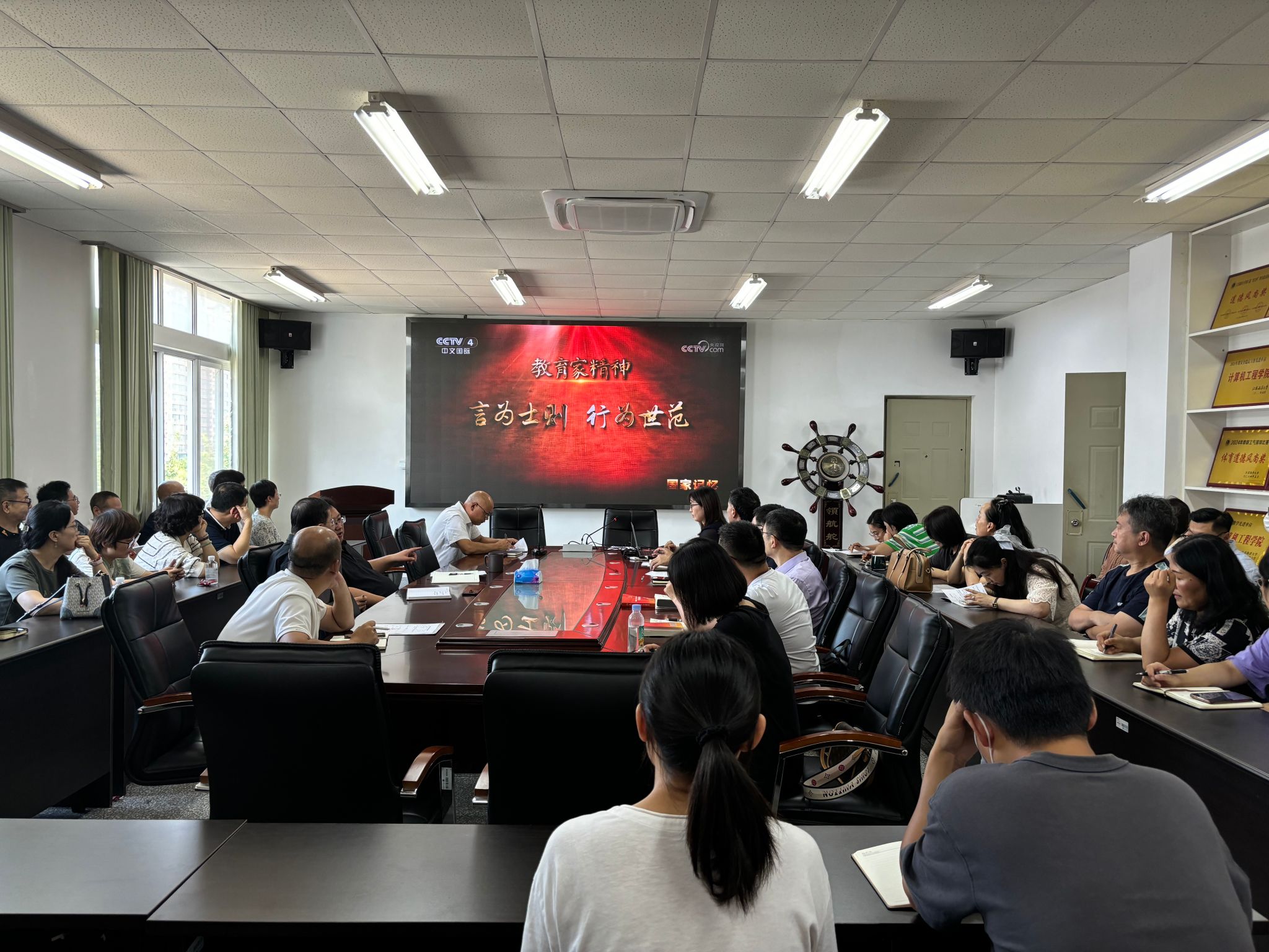 会上,唐瑶首先传达学习了校党委书记许峰、校长宁晓明在2024秋季学期党政工作布置会上的讲话精神。随后,组织全体教职工集中观看了视频《国家记忆 · 教育家精神》,她希望全体教职工要进一步加强师德修养,树立良好形象,大力弘扬教育家精神,以更加奋发有为的精神状态投身教育强国建设实践。