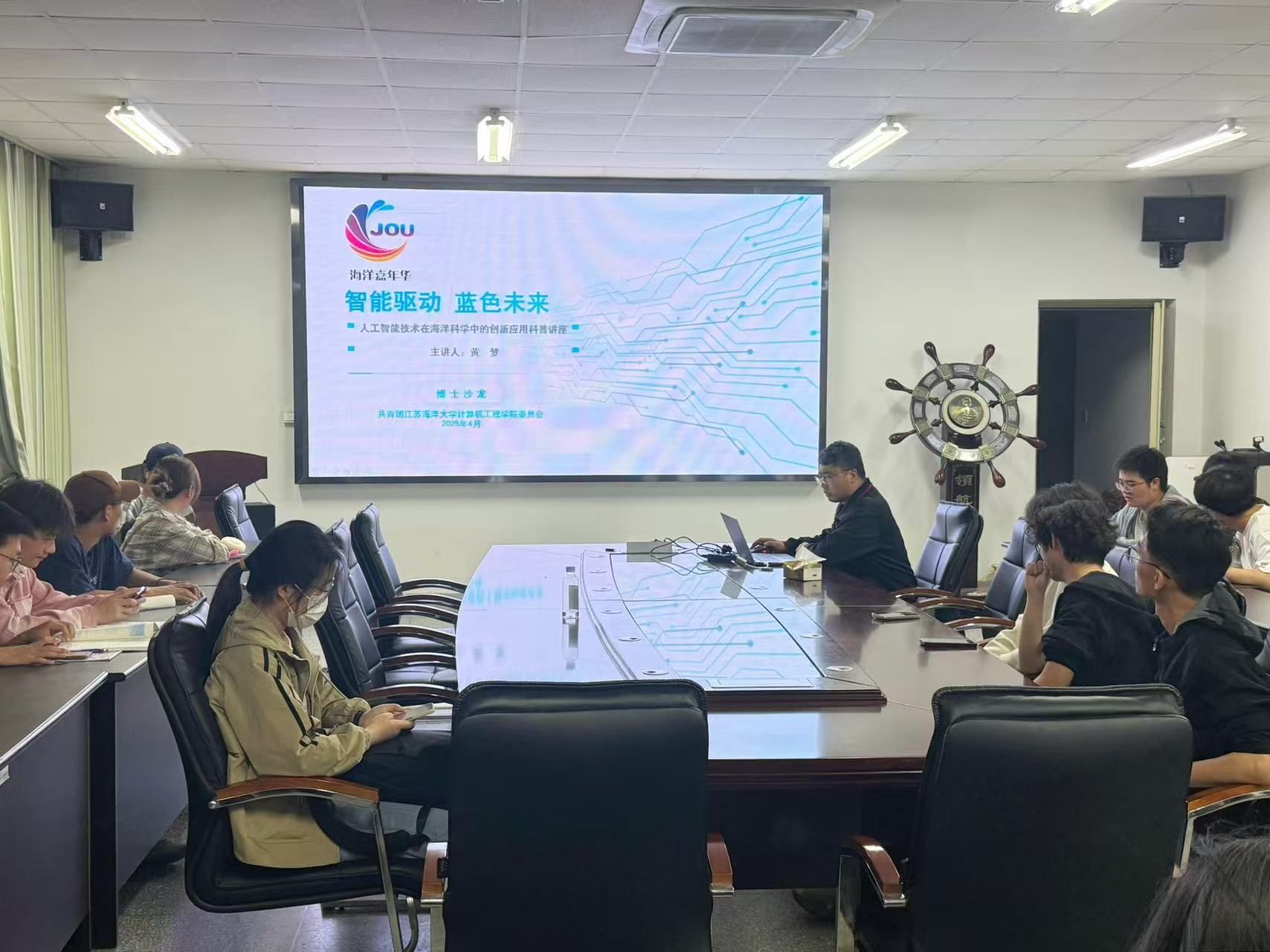 为进一步培养学生知海、爱海的海洋情结,同时结合当前人工智能技术热点,在校第三届海洋嘉年华系列活动中,计算机工程学院依托品牌项目“博士沙龙”,举办了“智能驱动 蓝色未来”——人工智能技术在海洋科学中的创新应用科普讲座。