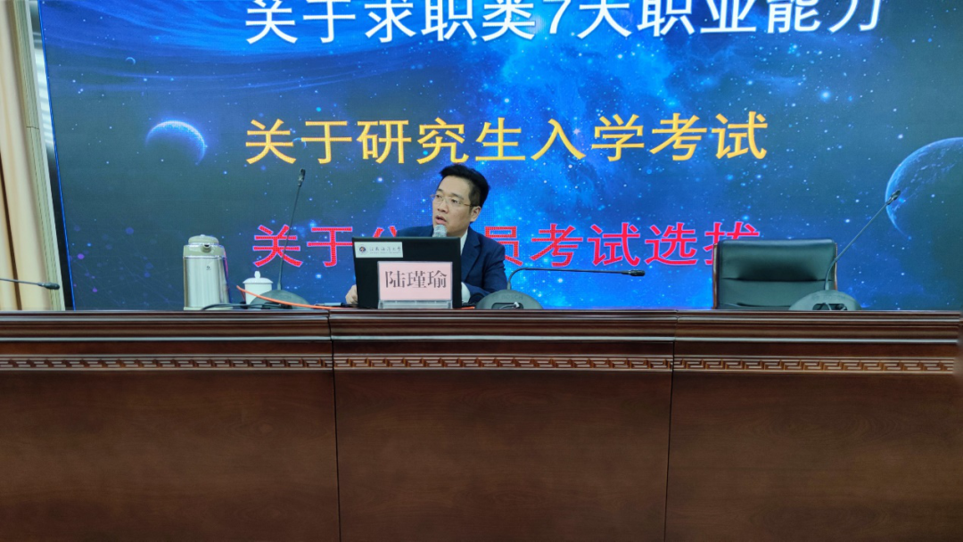 最后陆老师在讲座中强调考研、考公、就业的重要性,详细讲解了各类考试流程、考试的核心命题原理,告诫同学一定要有一颗爱学习的心,认清自己,不要荒废自己的学业。