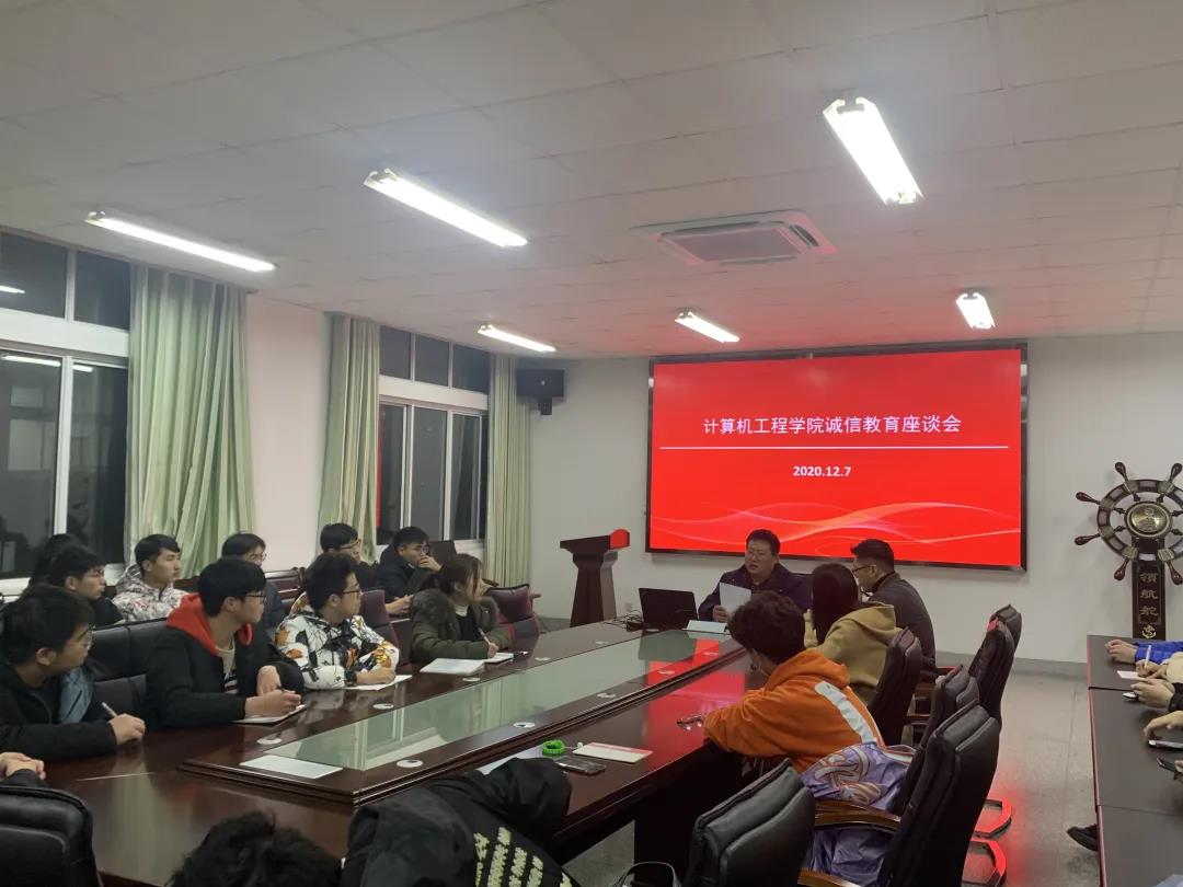 为进一步培养同学的诚信意识,营造良好的诚信氛围,12月7日晚,计算机工程学院在计算机楼306会议室举办了诚信教育座谈会。会议由学院党委副书记兰巍主持,院团委副书记苏琴、学工办副主任唐康、团学组织主要负责人以及各班班长、团支书参加座谈会。