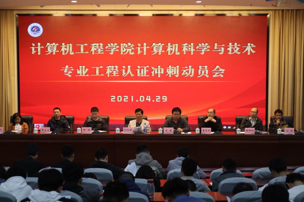 4月29日晚7点,计算机工程学院在黄海厅举办计算机科学与技术系工程教育专业认证工作冲刺动员会,会议由党委副书记兰巍主持,副院长纪兆辉、计算机科学与技术系系主任张键、副主任李宏然、副主任李正夫、计算机科学与技术专业各班班主任及全体学生参加会议。