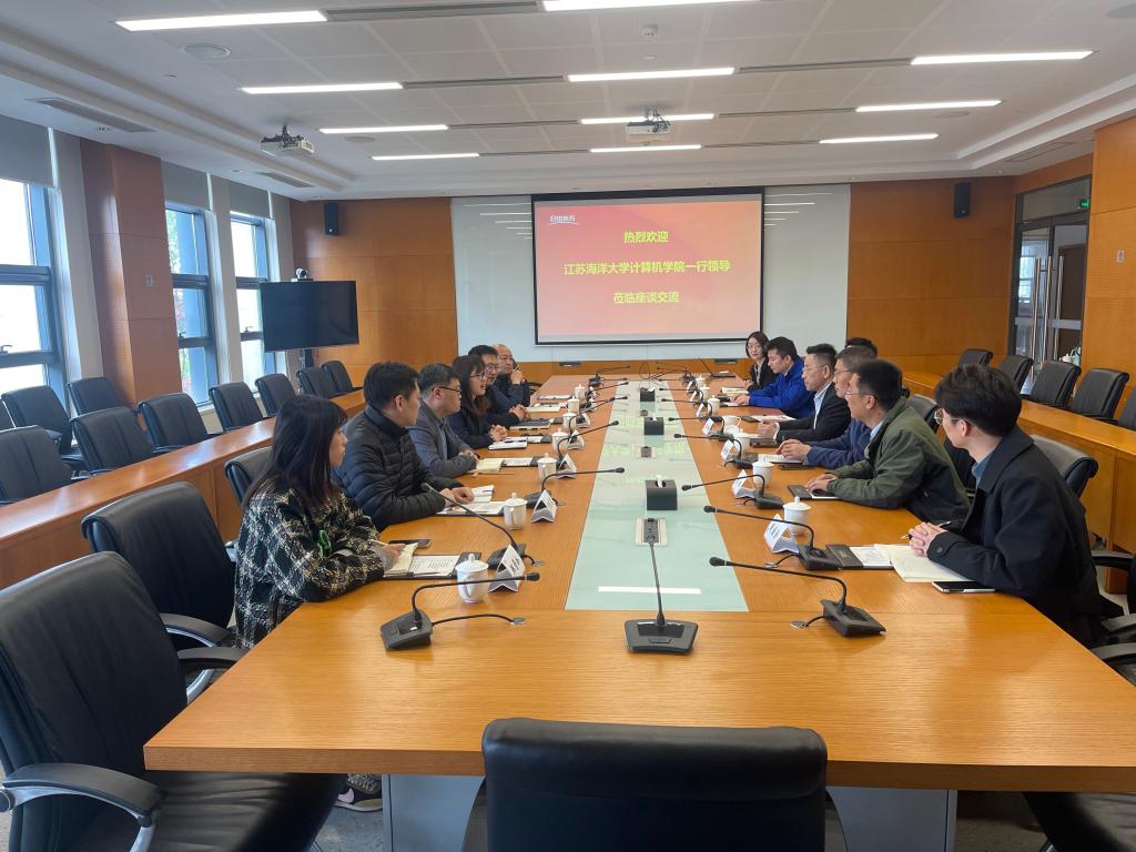 日出东方控股股份有限公司党委书记万旭昶、人力资源总监刘冰等相关部门负责人热情接待了学院一行。万旭昶详细介绍了日出东方控股股份有限公司的基本情况以及公司“一横一纵”发展战略、技术体系和人才招聘需求等。万旭昶表示,一直以来,江苏海洋大学为公司输送了大批优秀人才,希望接下来与计算机工程学院,在人才培养、技术交流、就业招聘等方面进一步加强合作,吸引更多“家门口”的优秀毕业生,为公司发展提供强有力的人才和技术支撑。