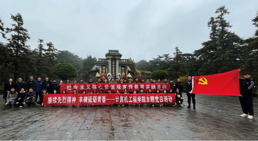 翠柏青松伴英烈,清明祭扫寄哀思。为了深刻悼念革命烈士,进一步对青年大学生进行爱国主义教育,培育和践行社会主义核心价值观,4月4日,计算机工程学院组织50余名学生党员及学生骨干前往抗日山烈士陵园开展“赓续先烈精神 丰碑砥砺青春”主题党日活动,学院学工办主任唐康、院团委书记苏琴,辅导员李航霄、穆远超、韩璧如参加,唐康主持活动。首先由学生第三支部党员李鑫介绍抗日山烈士陵园的基本情况,全体师生向烈士纪念碑默哀。