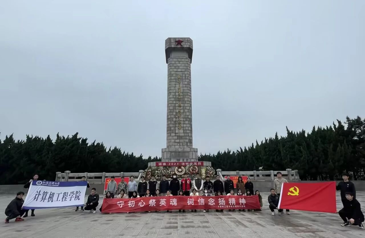 翠柏青松伴英烈,清明祭扫寄哀思。为了深刻悼念革命烈士,厚植爱国主义情怀,培育和践行社会主义核心价值观,4月3日,计算机工程学院组织40余名学生党员及学生骨干前往安峰山烈士陵园开展“守初心祭英魂 树信念扬精神”主题党日活动,学院学工办主任唐康、院团委书记苏琴,辅导员李航霄、穆远超、韩璧如参加,唐康主持活动。首先由学生第三支部党员朱羿鉴介绍安峰山烈士陵园的基本情况,全体师生向烈士纪念碑默哀。