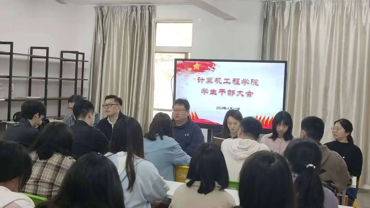为在进一步加强学生干部队伍建设,提高学生干部的执行力和综合素质,以最佳的状态迎接好新一轮本科教学审核评估。4月15日下午,计算机工程学院在A7/A8-205一站式社区召开了学生干部大会,院党委副书记兰巍、全体辅导员,各班级班长、团支书、学生会干部70余人参加会议。