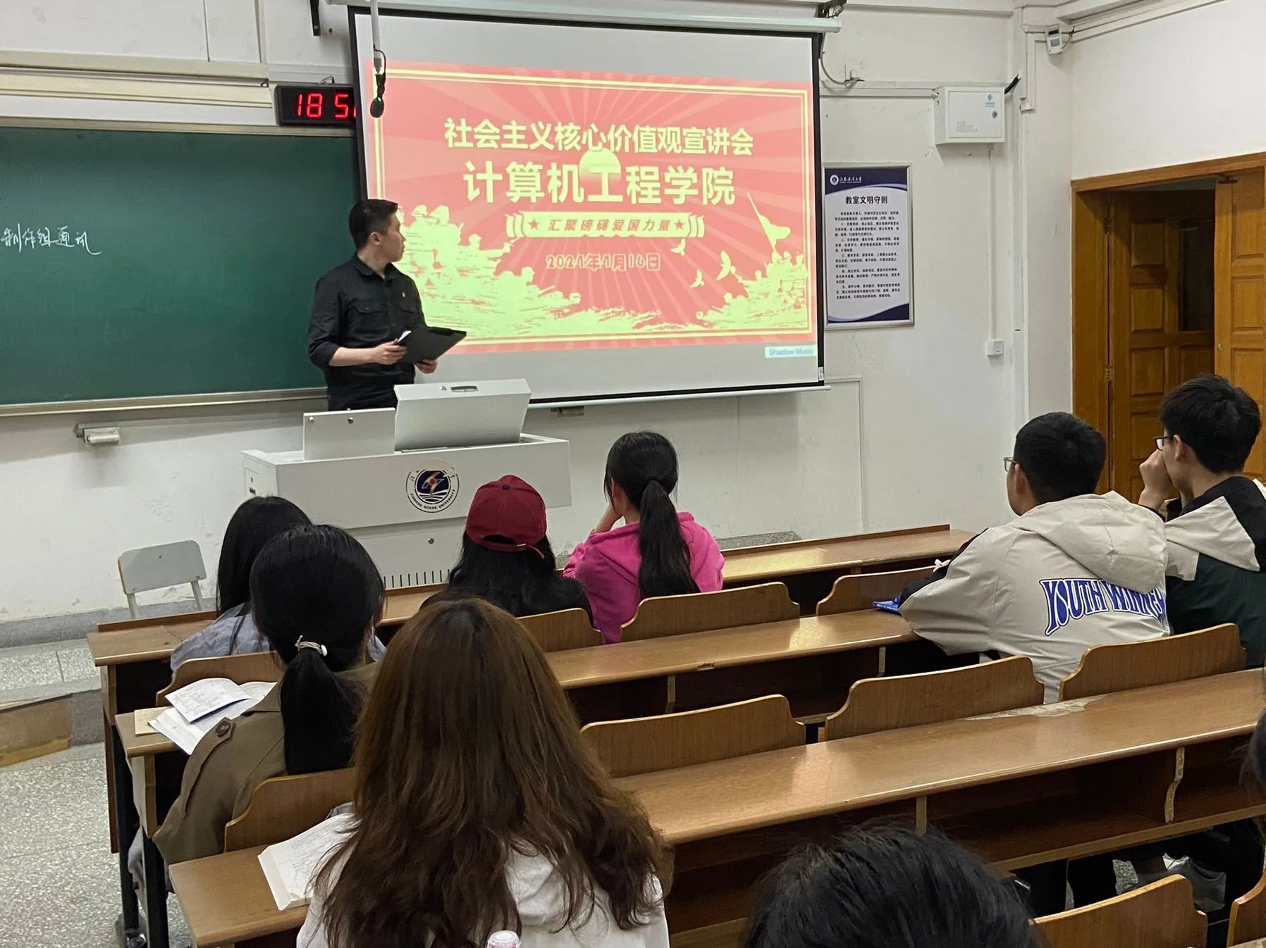为了提升学院学生政治素养,厚植爱国主义情怀,培育和践行社会主义核心价值观,2024年4月16日晚,学院开展了爱国主义教育主题宣讲会,由院学生会主席朱羿鉴主讲,23级网络专业80余人参加。