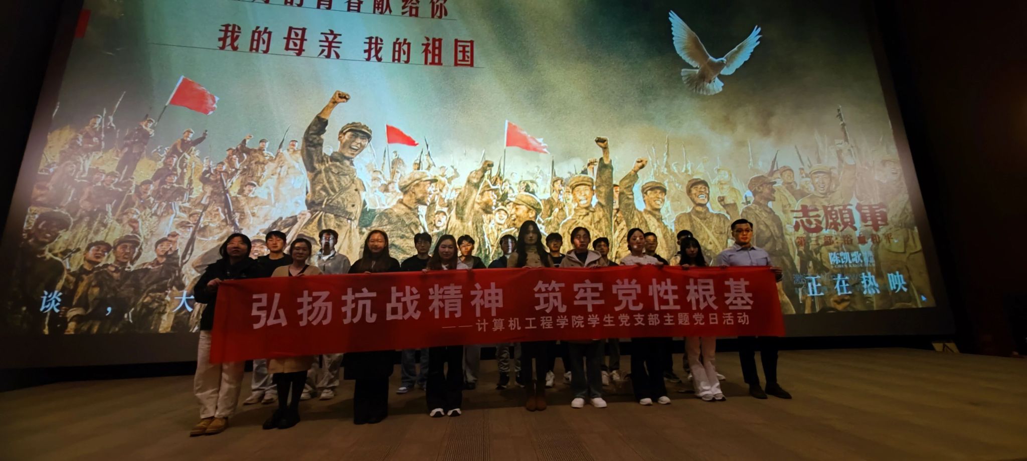 为了深入推进爱国主义教育,筑牢学生党员党性根基,10月18日下午,计算机工程学院学生党支部组织全体学生党员开展“弘扬抗战精神、筑牢党性根基”主题党日活动,集体观看了抗美援朝题材影片《志愿军:浴血和平》。