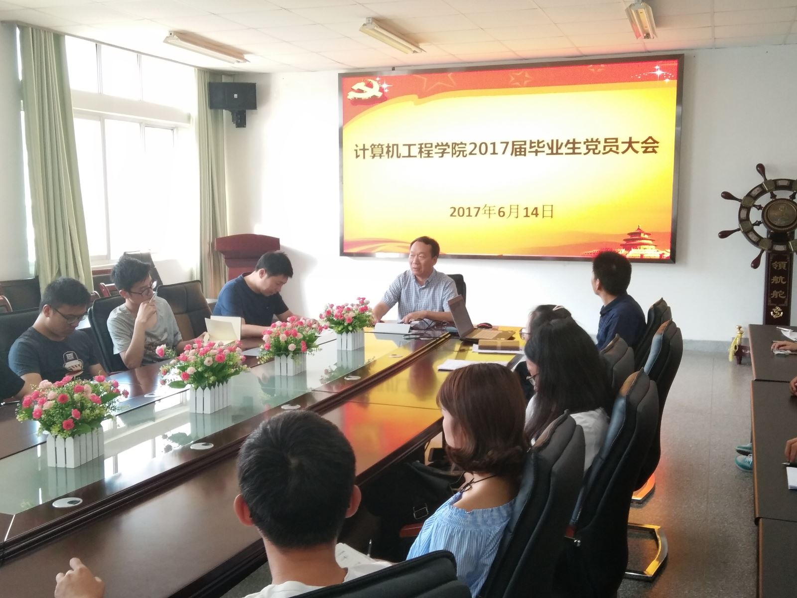 6月14日下午,计算机工程学院于会议室举办2017届毕业生党员教育大会,院党委书记赵耀华、各学生支部书记、毕业生党员、毕业班主要学生干部和新发展党员参加了大会,党政办副主任田扬启主持会议。