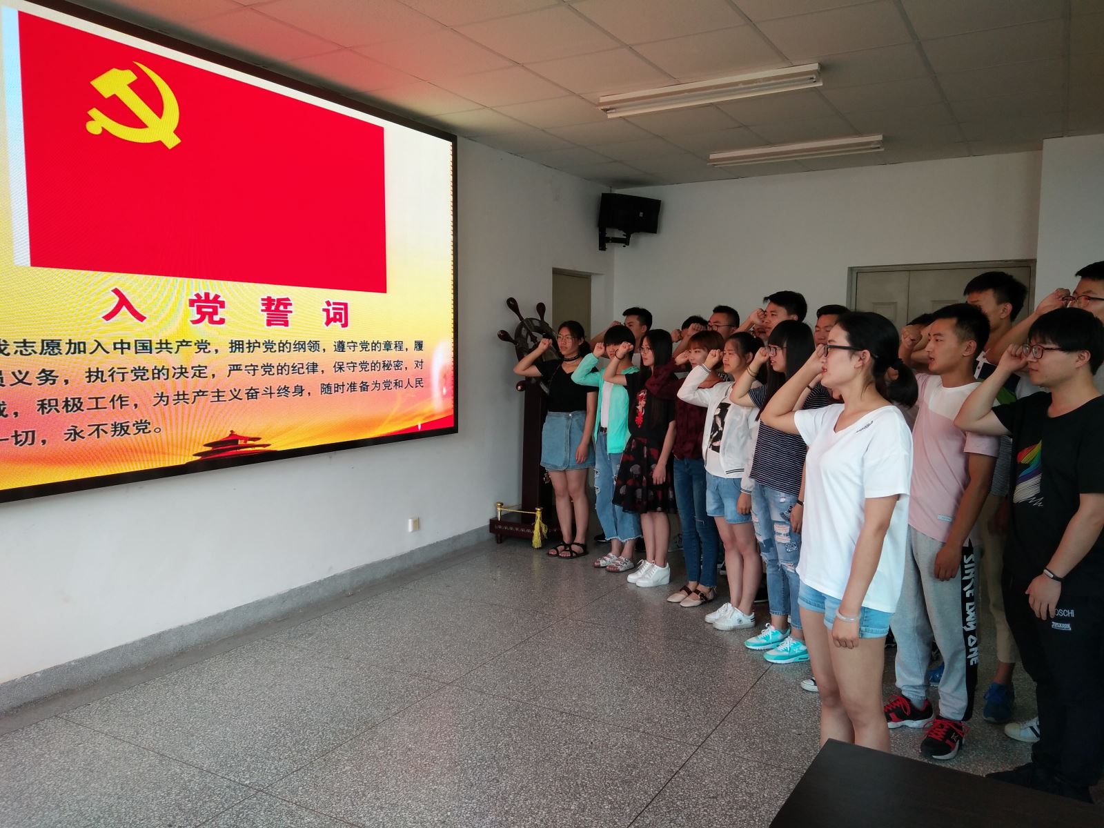 赵耀华对毕业生党员做临行前的远航教育。他表示,一名党员就是一面旗帜。学生党员,是同学中的佼佼者,是同龄人的道德楷模和行动表率。作为淮工建设发展的见证者和重要的参与者,各位党员同学在自身求学进步的同时,在参与、服务、奉献中,在关爱、引领和带动身边同学中,彰显出计算机学生党员的精神风采和青春活力。最后,他希望毕业生党员们能够坚守信念、勇于担当、追求卓越,秉承责任之心,激情之志,梦想之帆,争先创优,做一名无愧于祖国、无愧于人民、无愧于母校的青年党员!